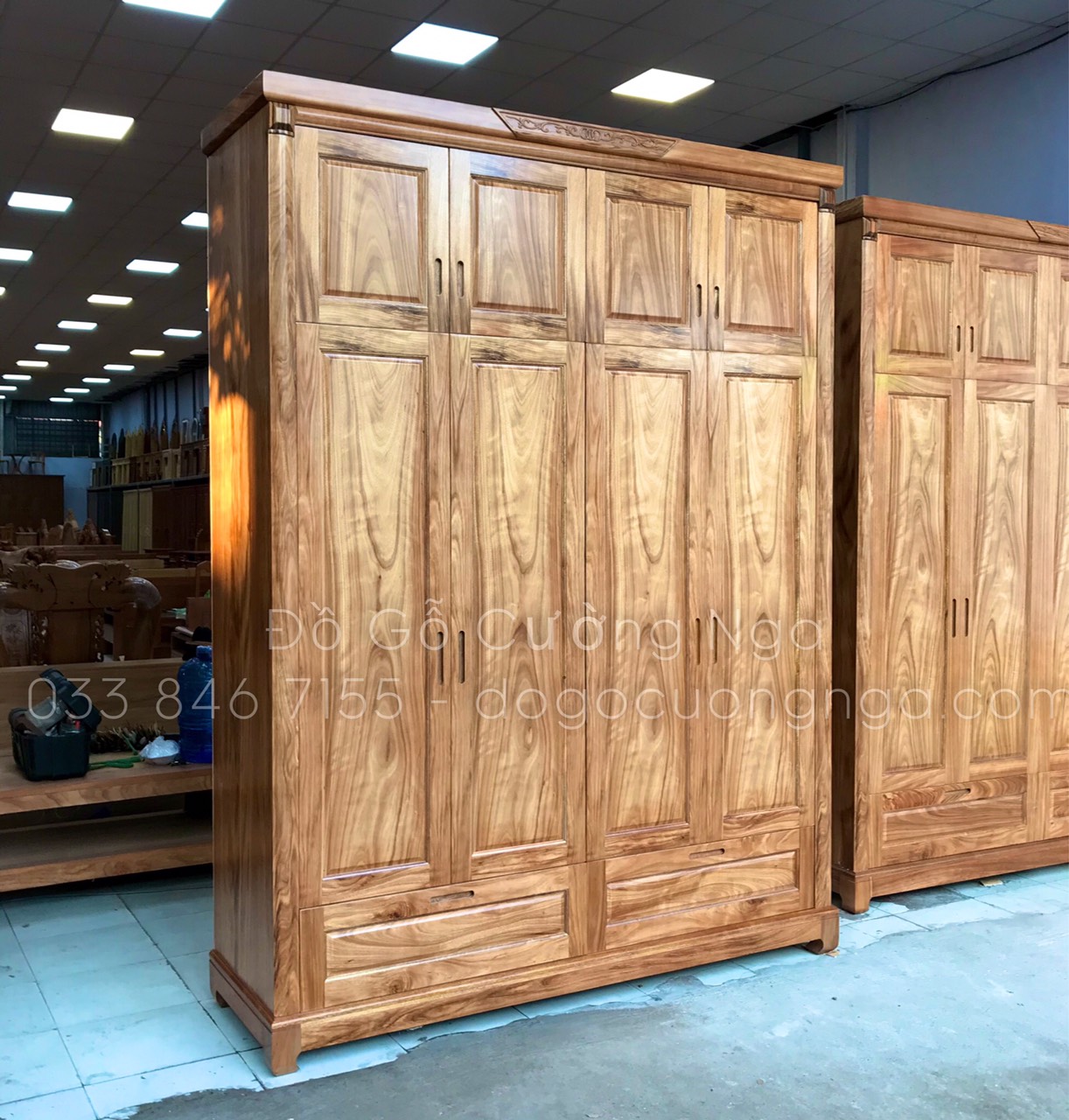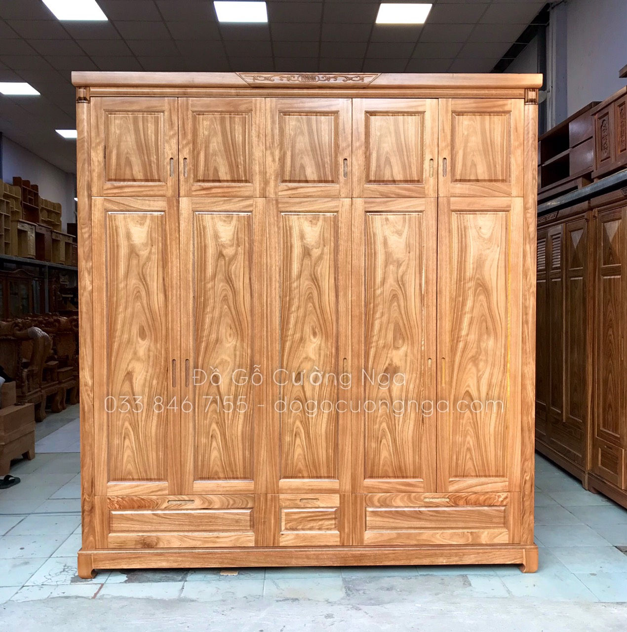 Tủ quần áo gỗ hương xám 5 cánh 2 tầng