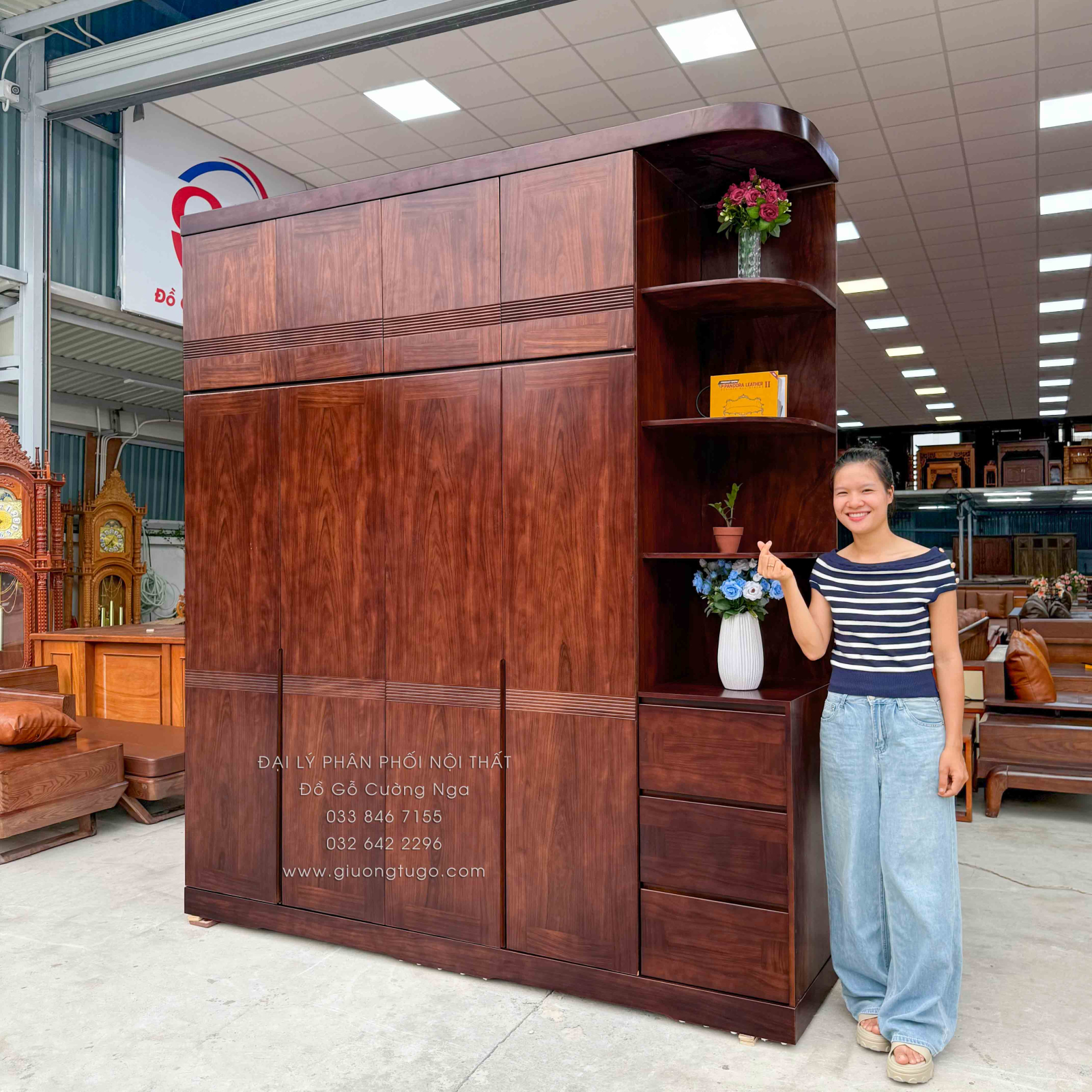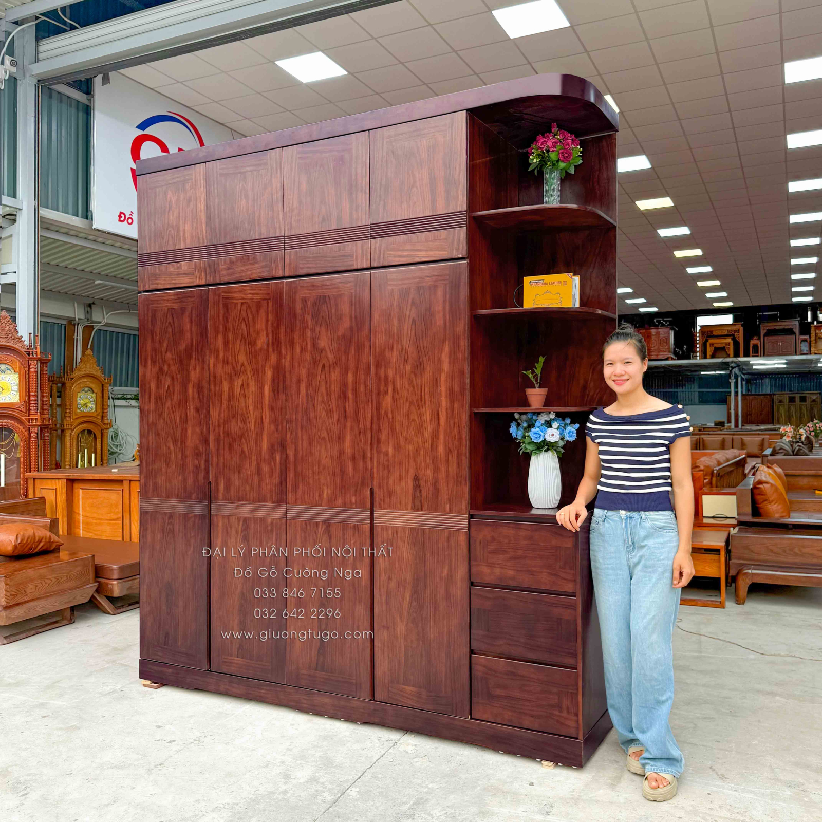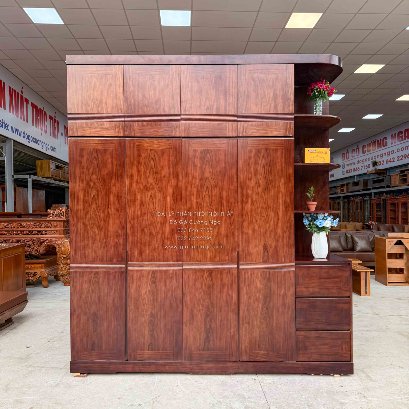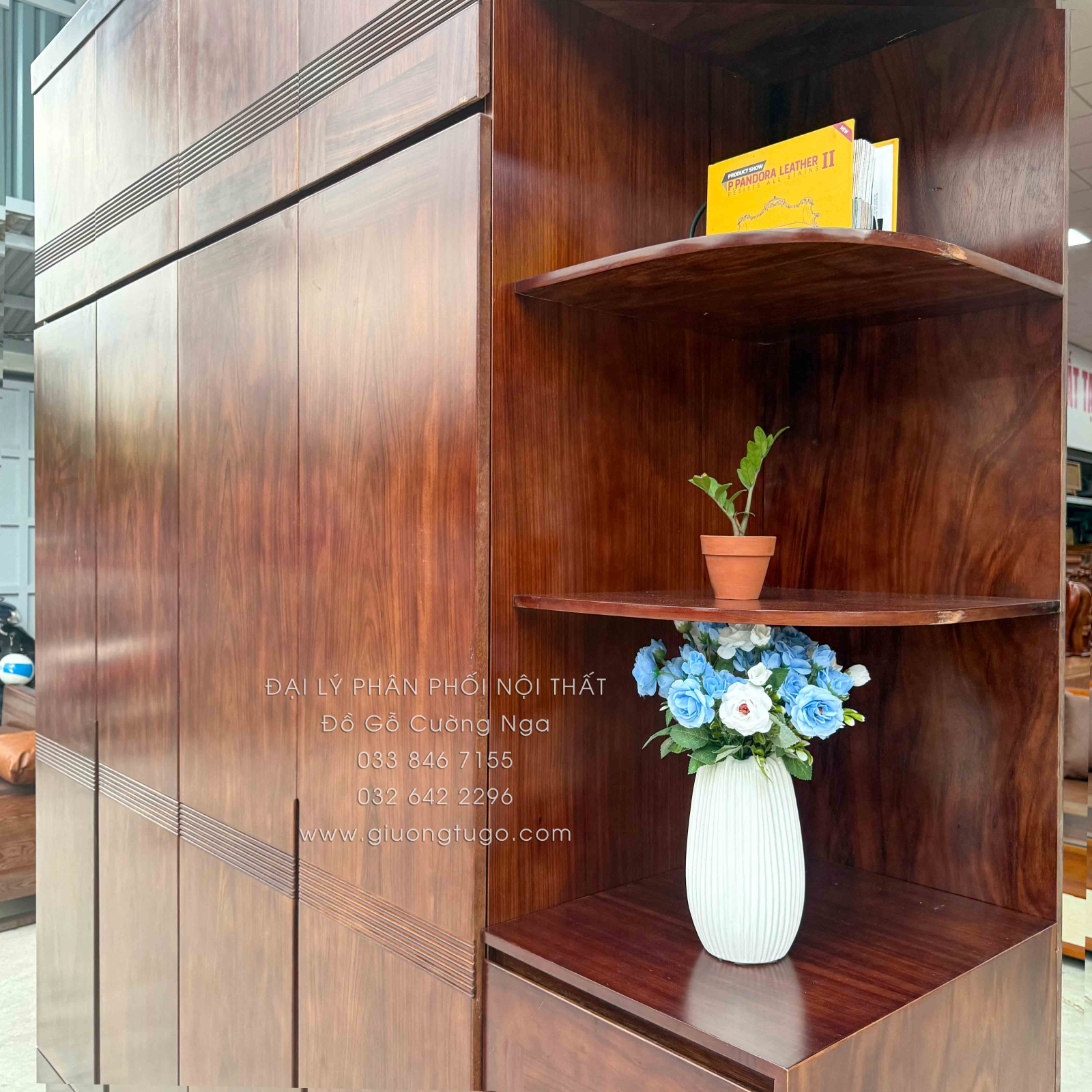 Tủ Áo Gỗ Hương Xám Màu Óc Chó 2 Tầng 4 Cánh Cánh Kèm Kệ Góc