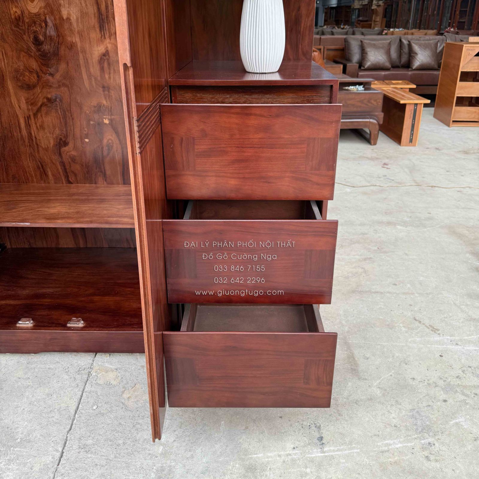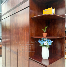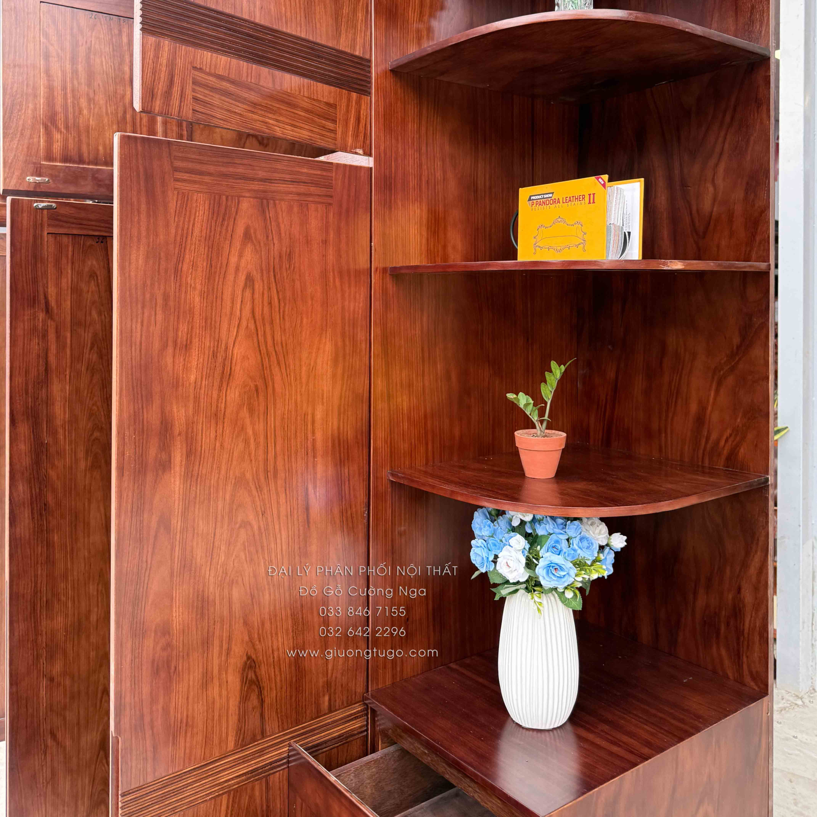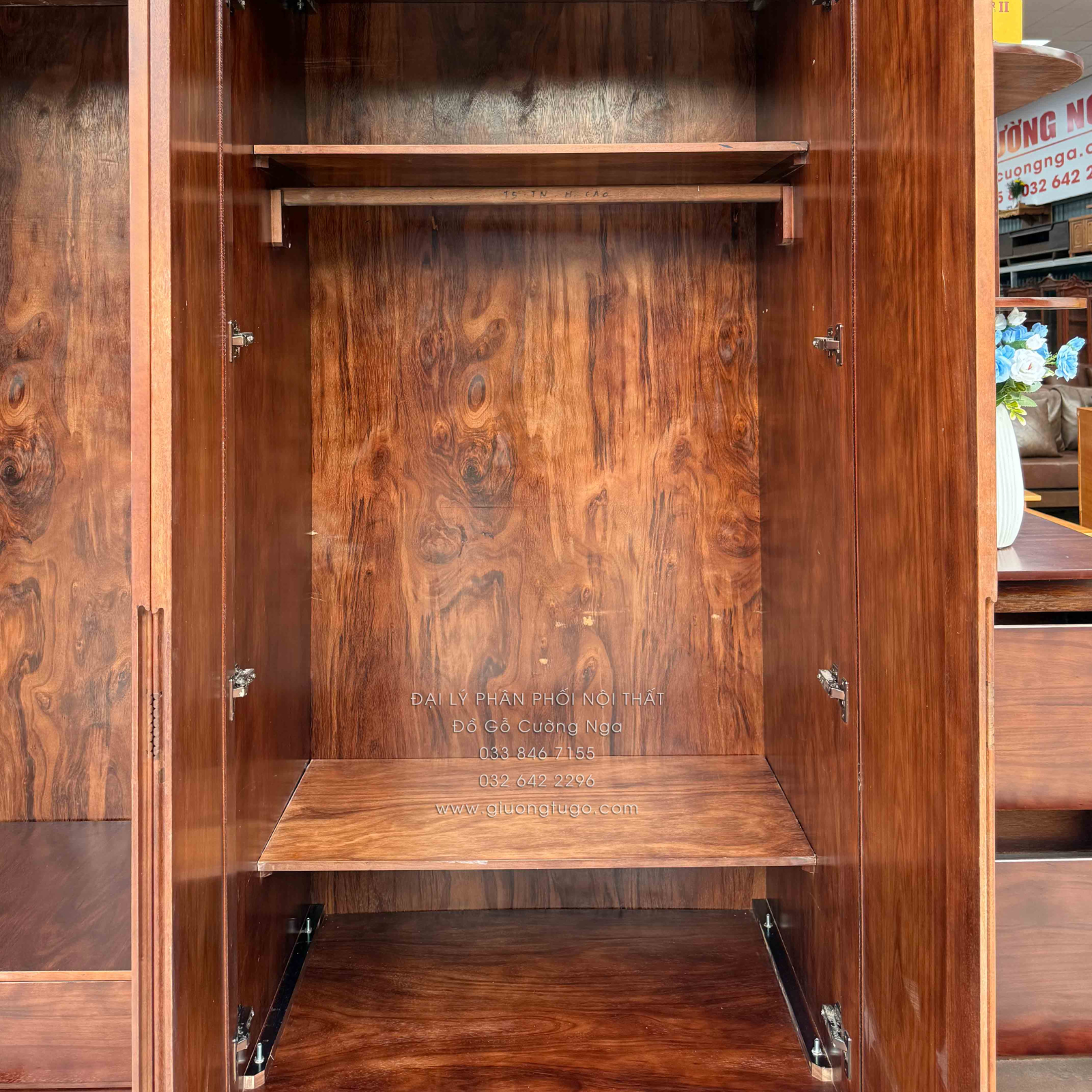 Tủ Áo Gỗ Hương Xám Màu Óc Chó 2 Tầng 4 Cánh Cánh Kèm Kệ Góc