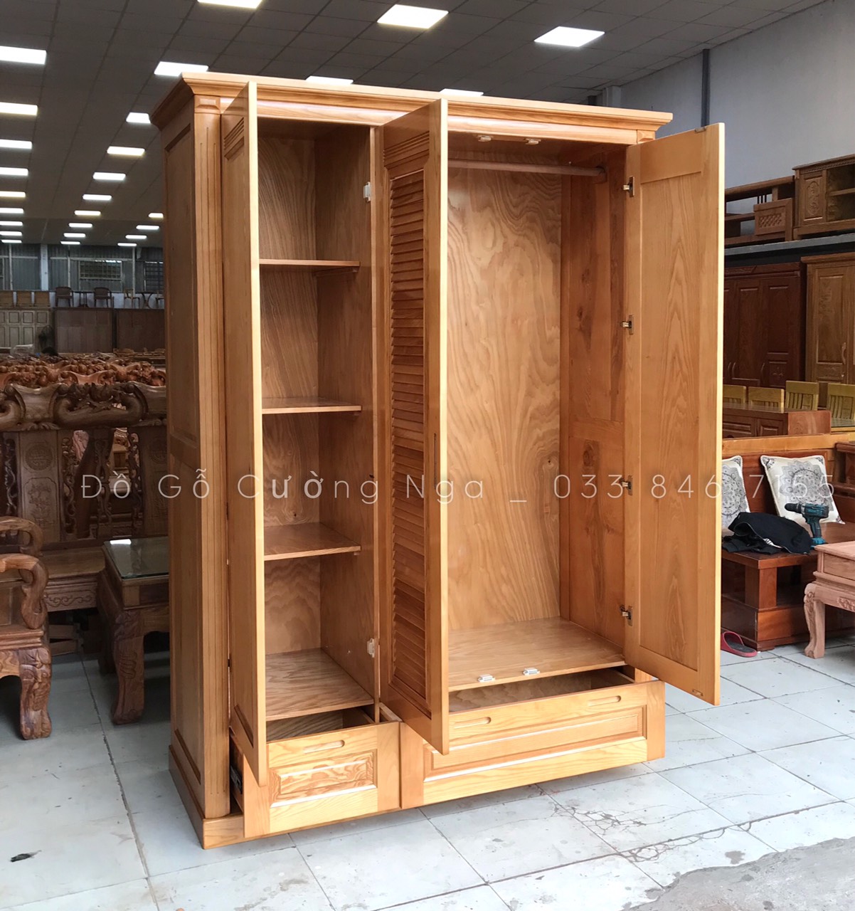Tủ Áo Gỗ Sồi Nga 3 Cánh 2 Buồng Hiện Đại