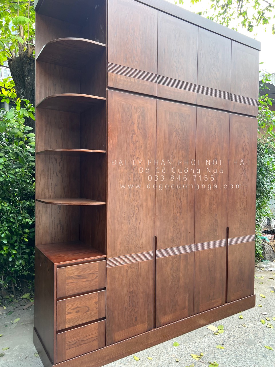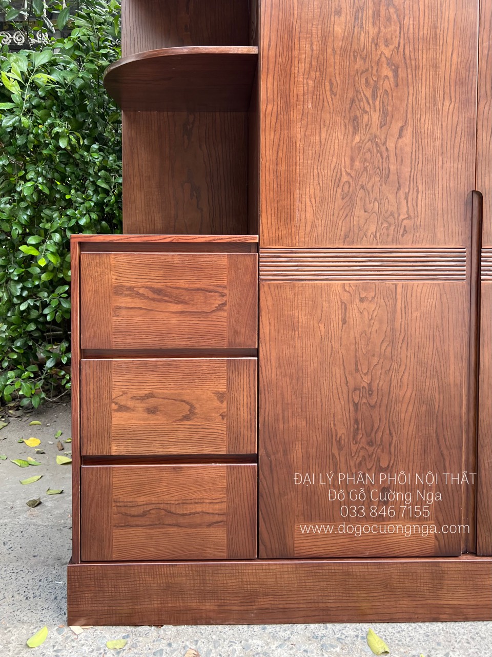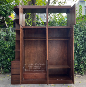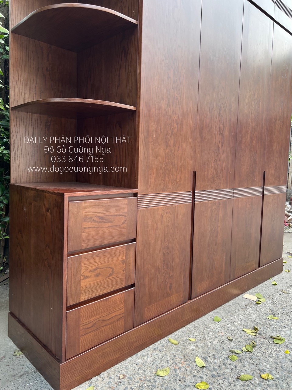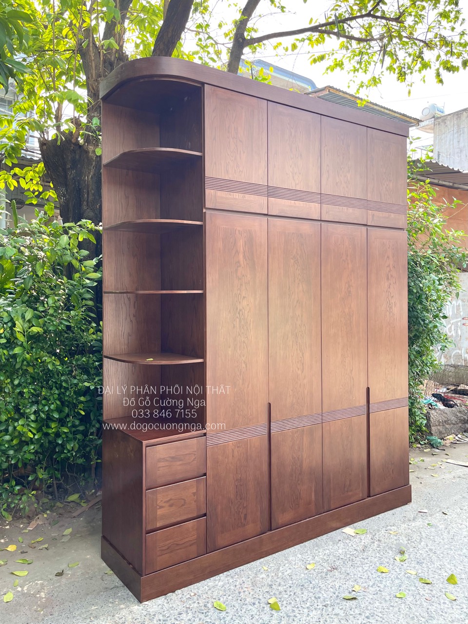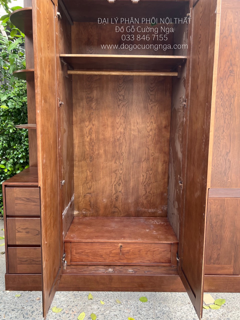 Tủ áo gỗ sồi nga lau màu óc chó cao cấp