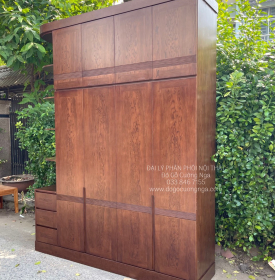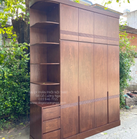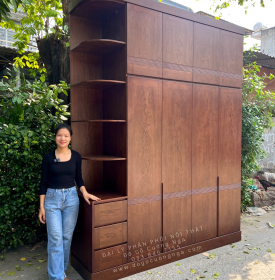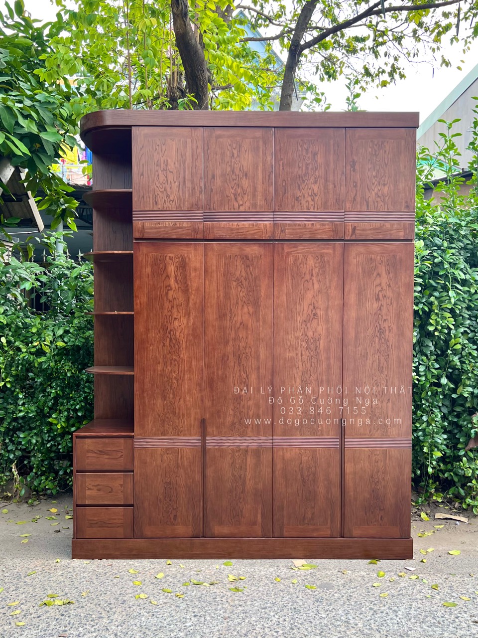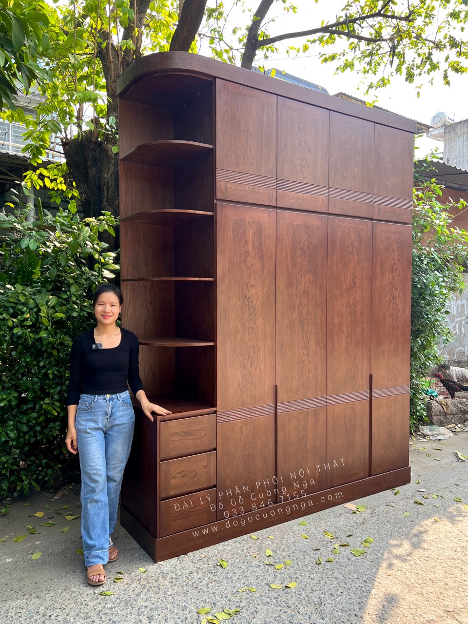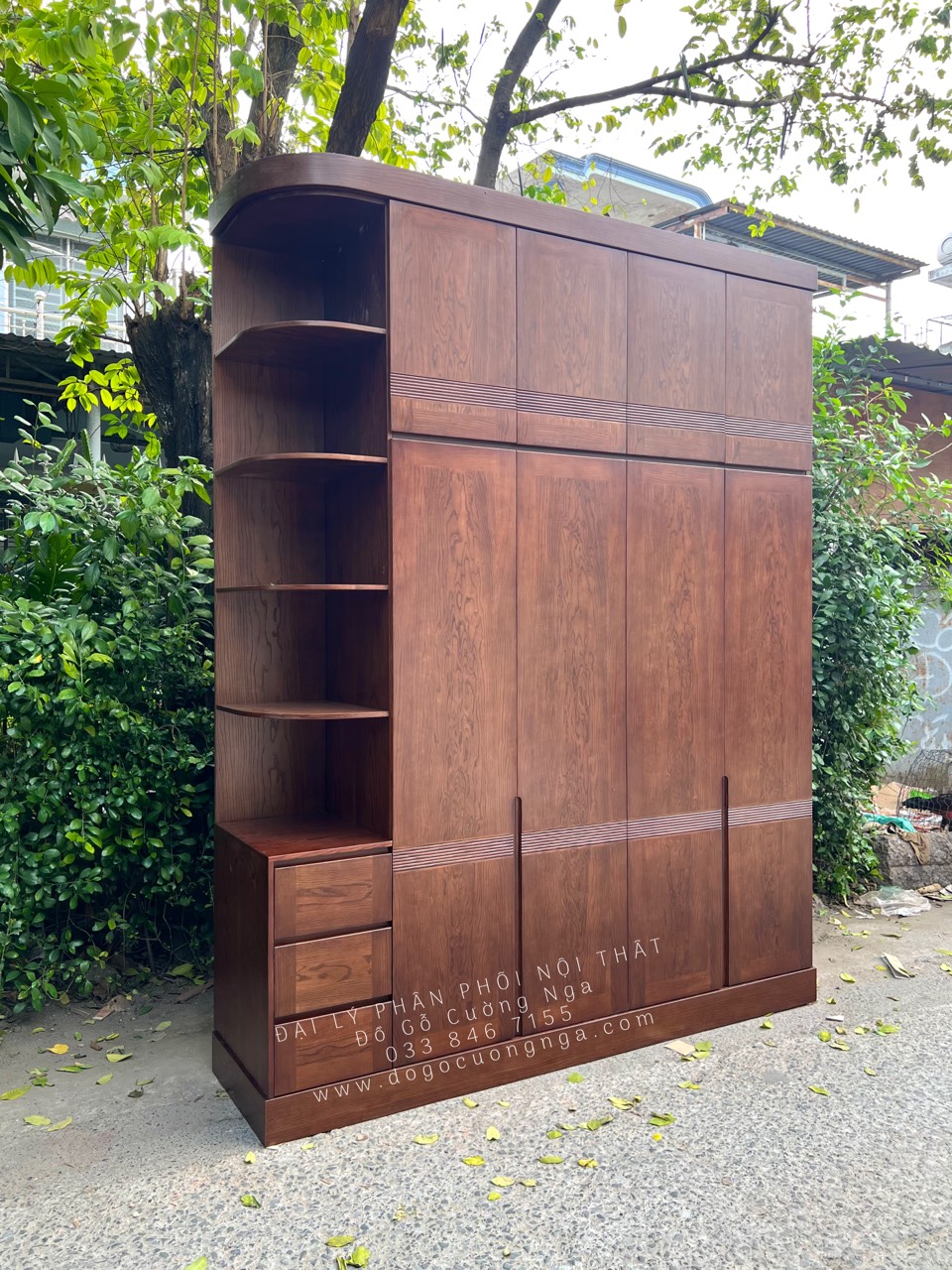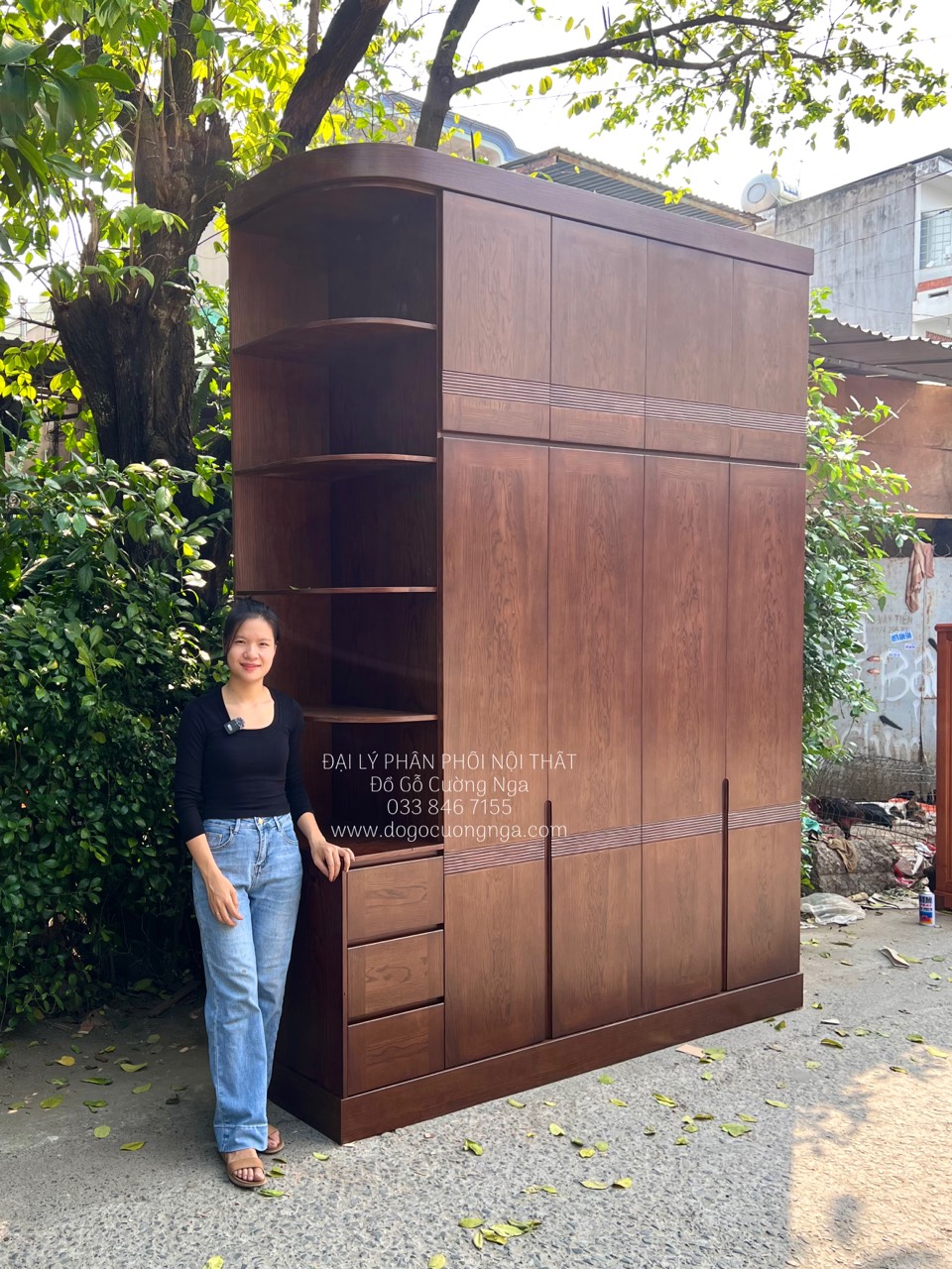 Tủ áo gỗ sồi nga lau màu óc chó cao cấp