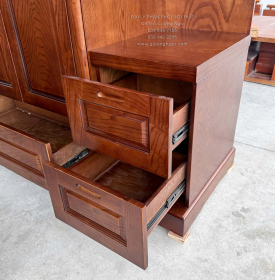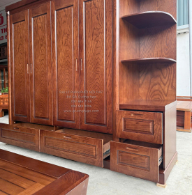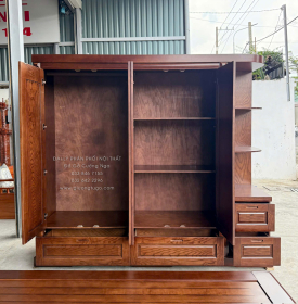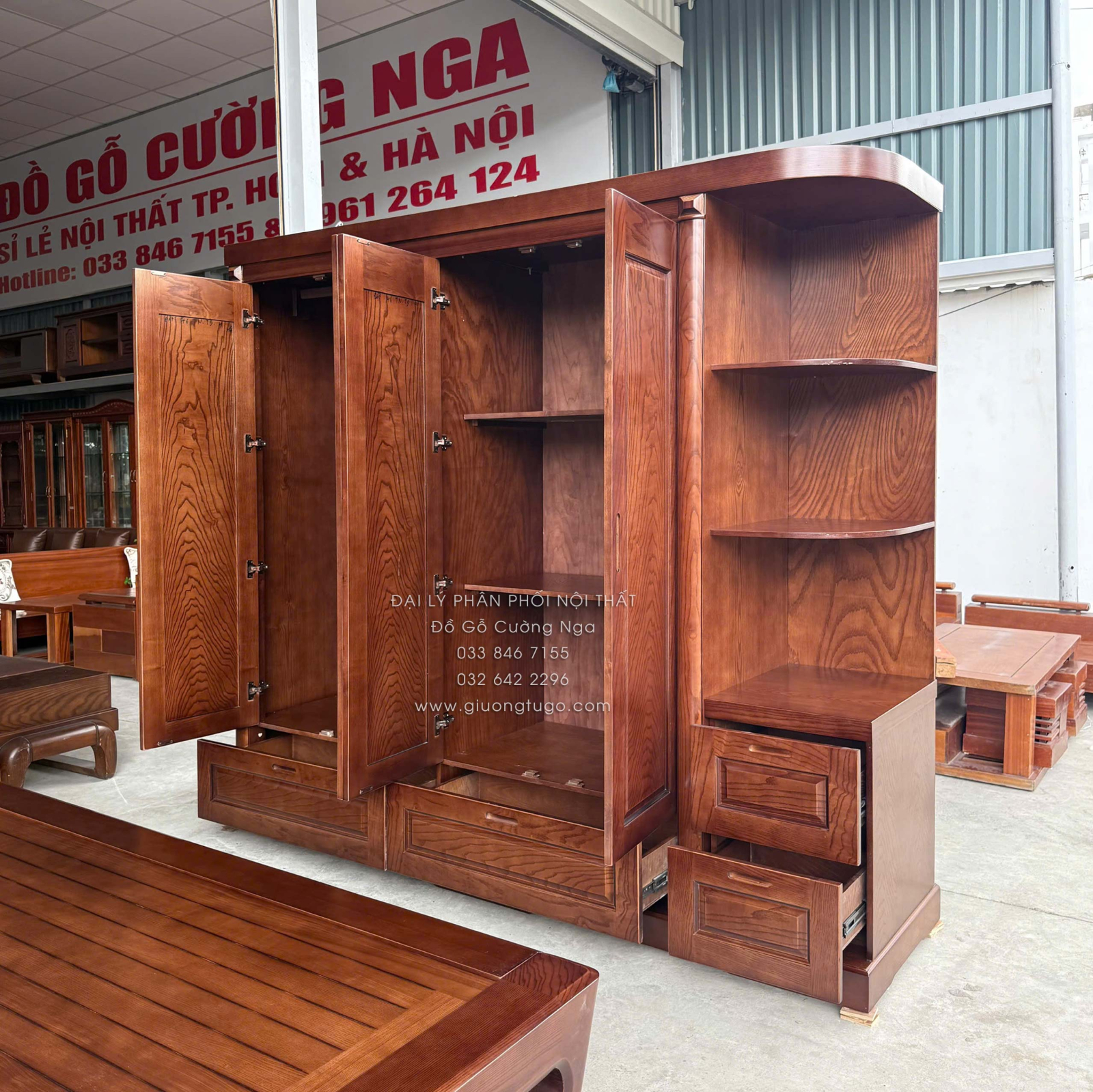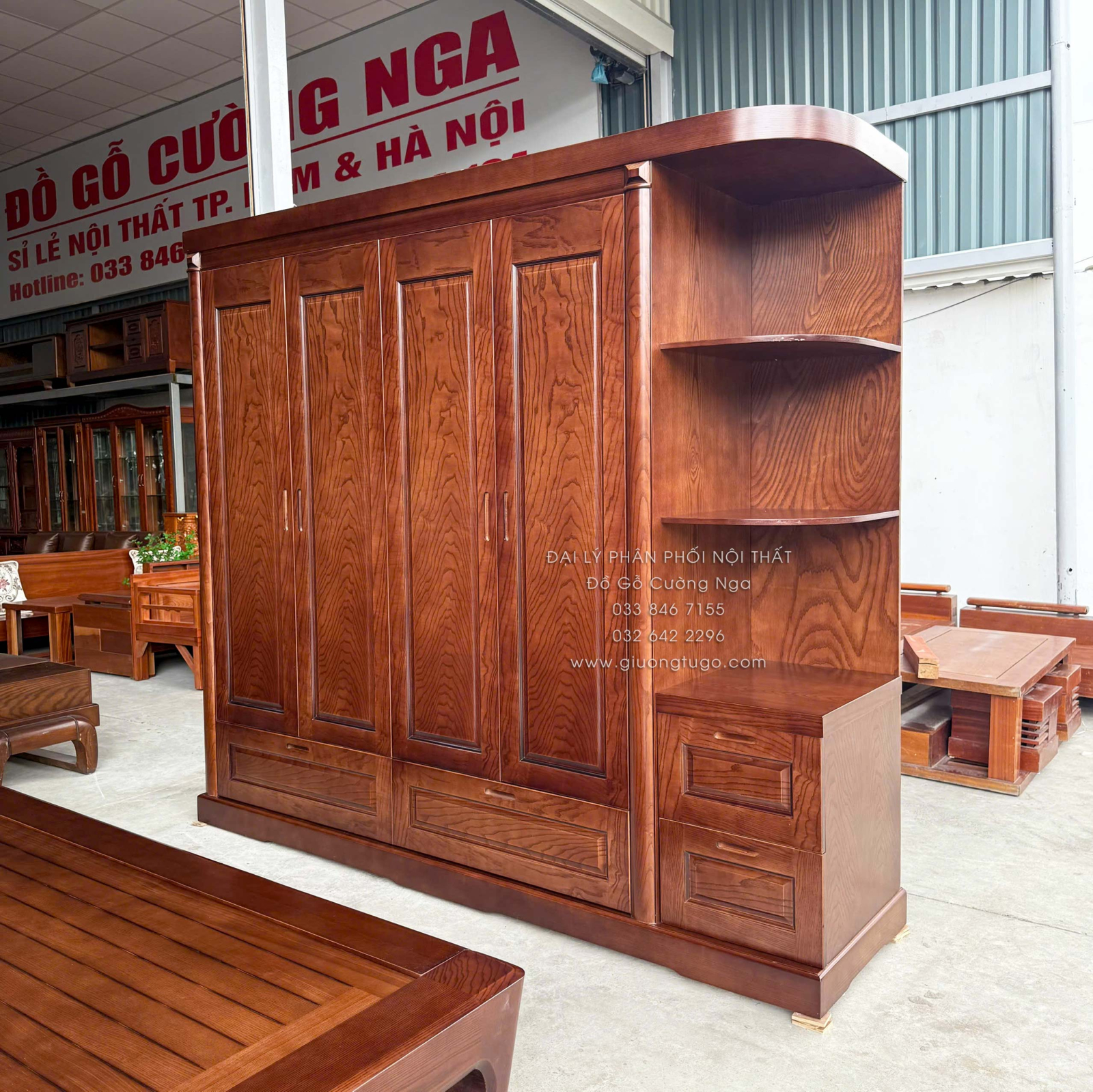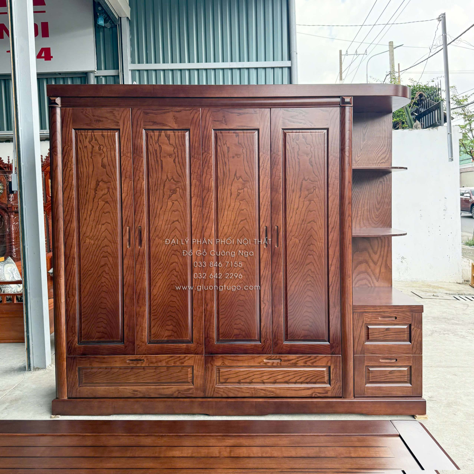 Tủ Áo Gỗ Sồi Nga 4 Cánh Kèm Góc Trang Trí Bo Cạnh - Màu Óc Chó