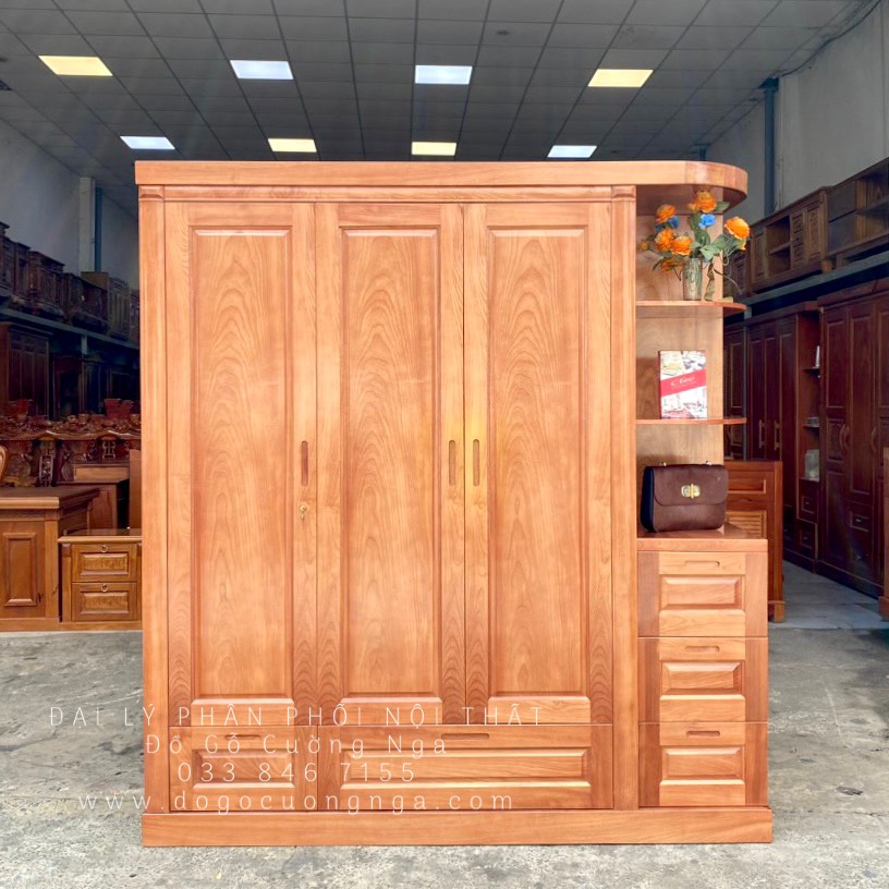 Tủ Áo Gỗ Xoan Đào 3 Cánh Kèm Kệ Góc Vế Phải Hiện Đại