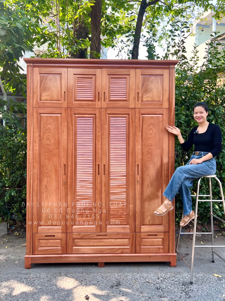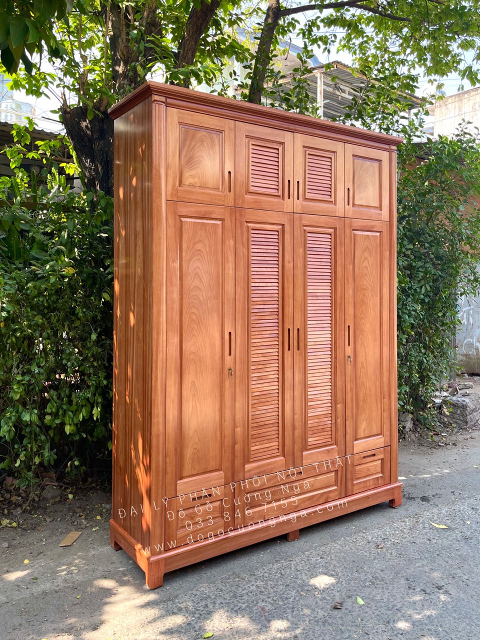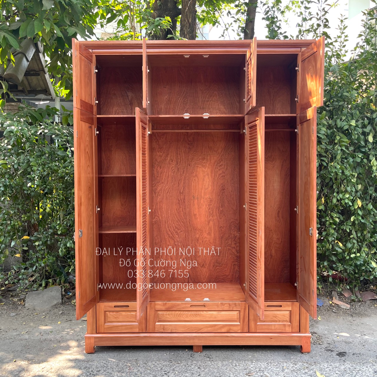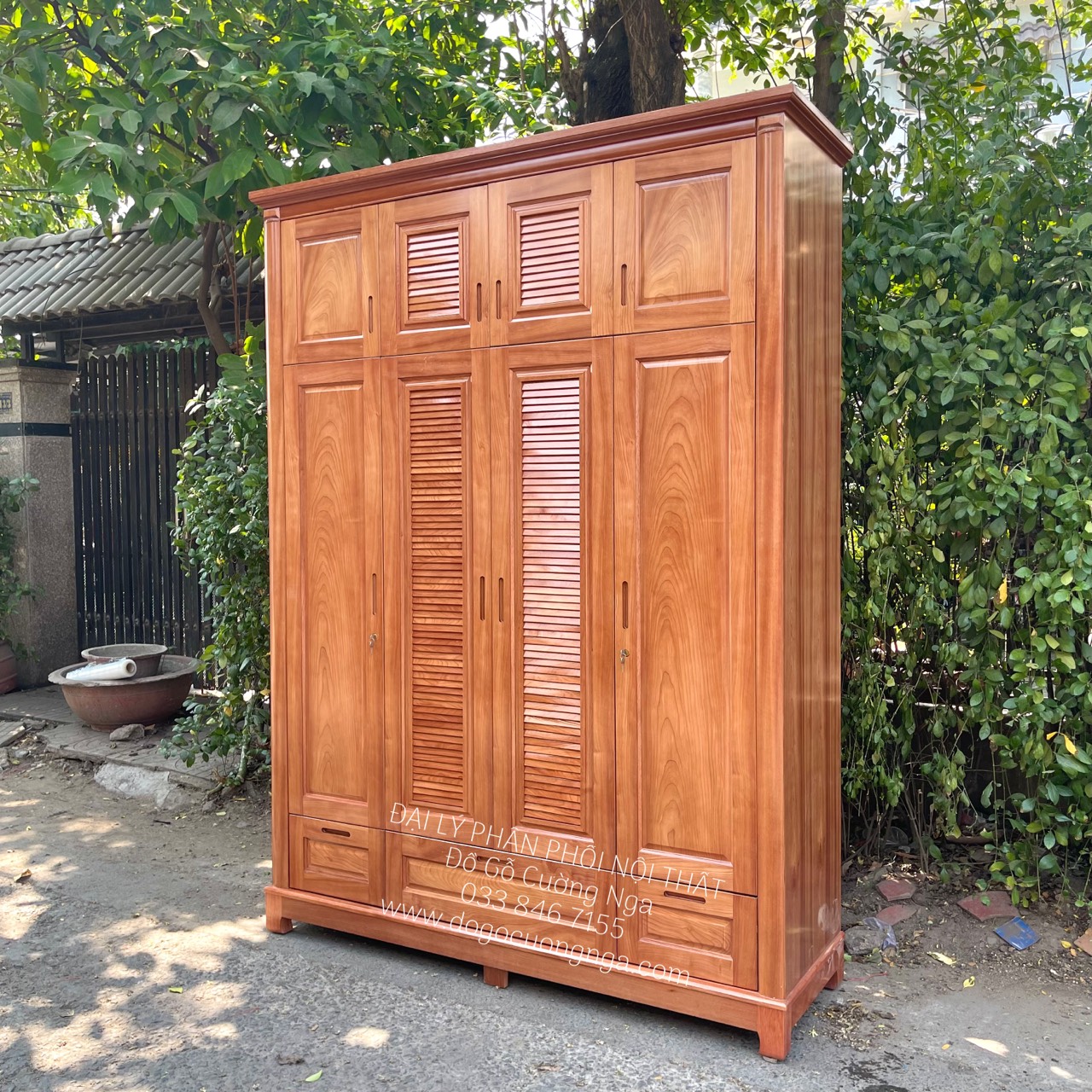 Tủ quần áo gỗ xoan đào 4 canh 2 tầng