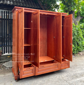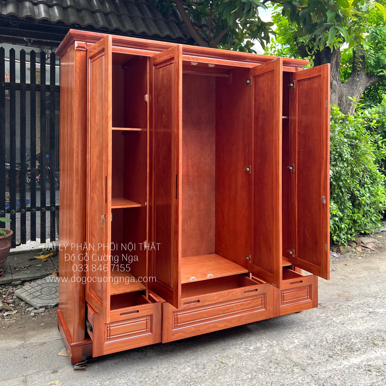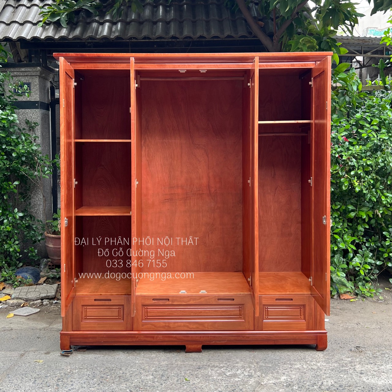 Tủ áo gỗ xoan đào 4 cánh 3 buồng tiện nghi
