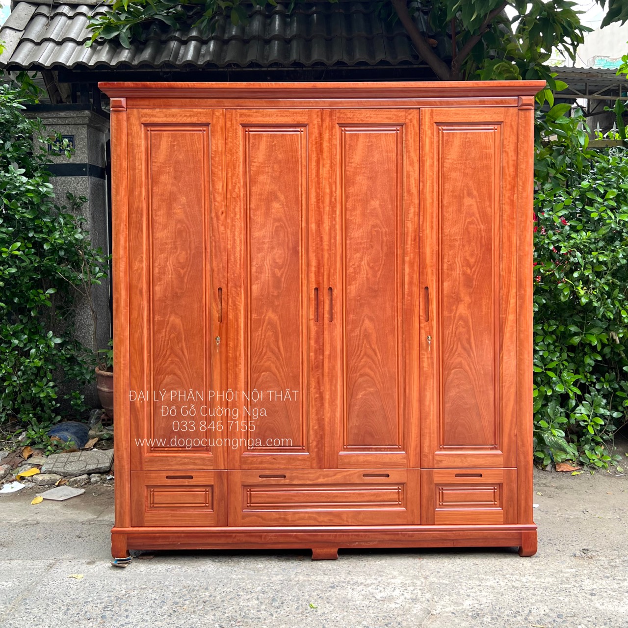 Tủ Áo Gỗ Xoan Đào 4 Cánh Cao Cấp Thiết Kế Đơn Giản