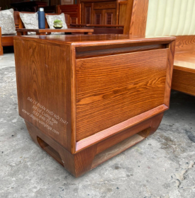 Giường Gấp Gỗ Xoan Đào 2 Ngăn Kéo Kèm Bàn (Có Kính) & Đôn Gỗ Sồi Bền Đẹp