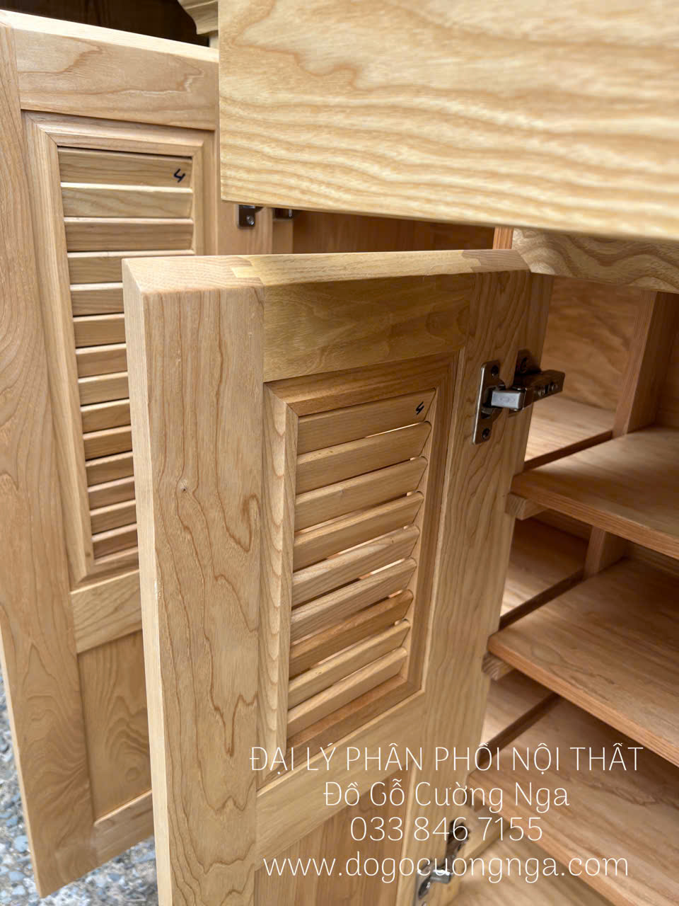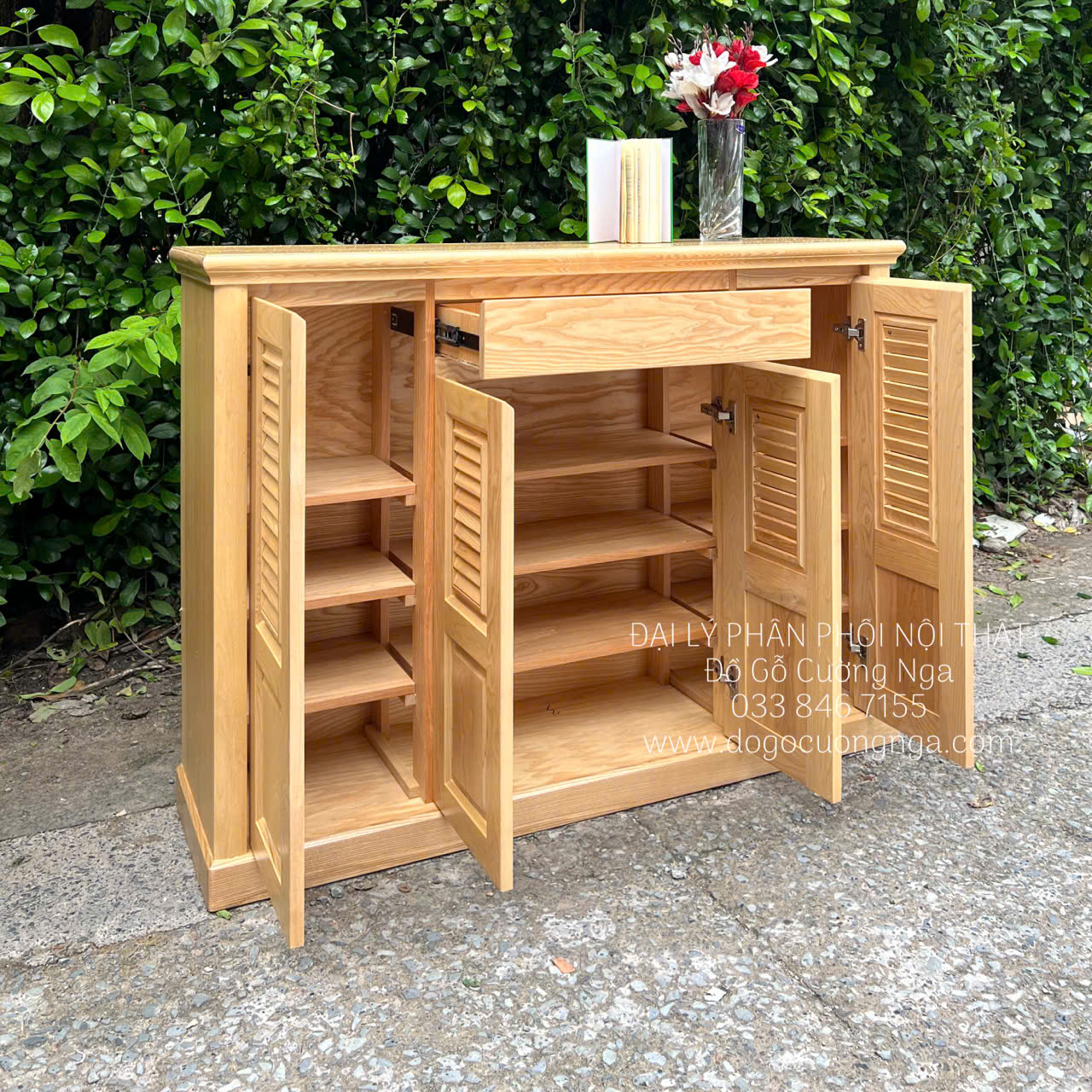 Tủ giày dép gỗ tự nhiên 4 cánh mở