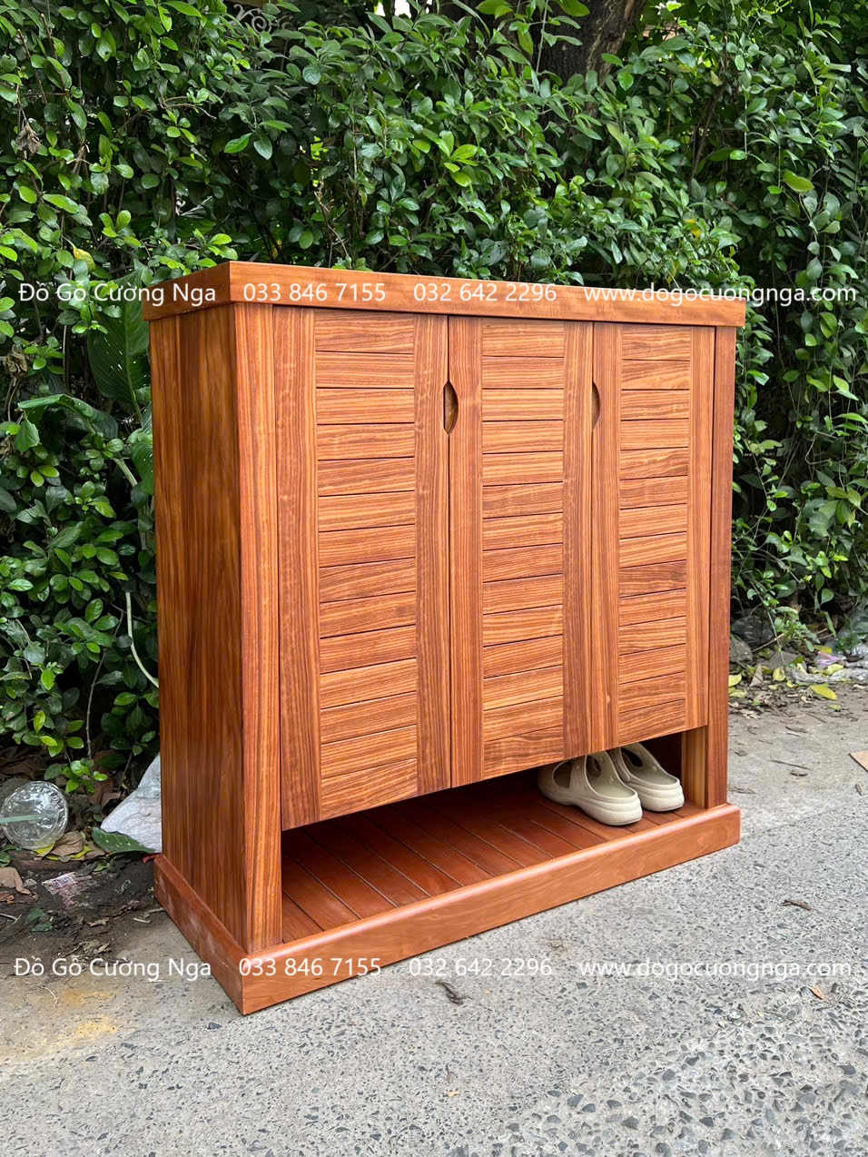 Tủ Giày Dép Gỗ Cẩm Vân 3 Cánh Thiết Kế Để Dép Đi Hằng Ngày