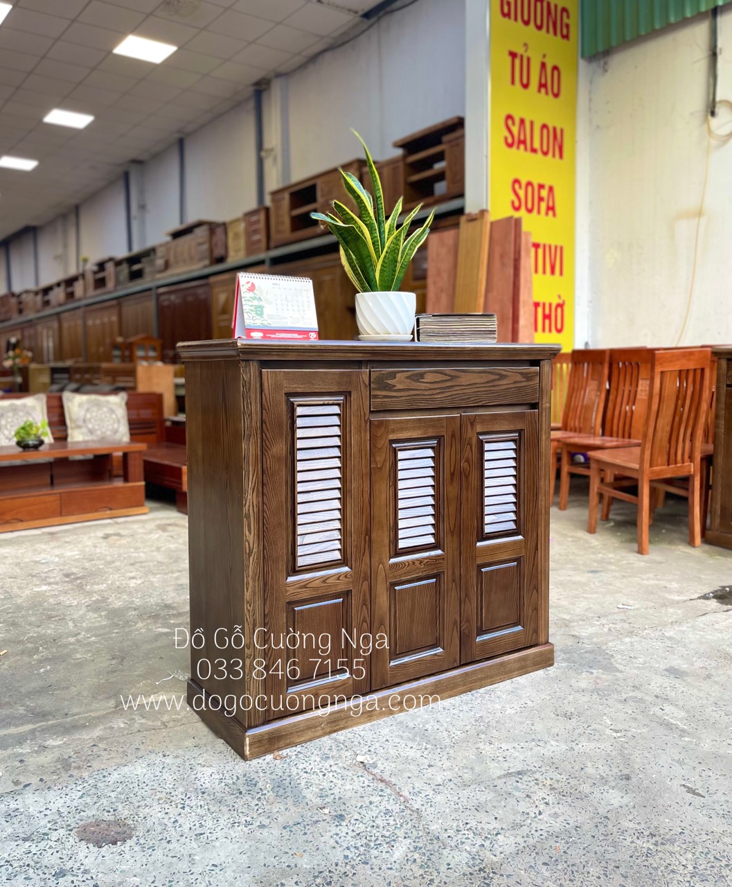 Tủ giày gỗ sồi nga lau màu óc chó 3 cánh tiện lợi