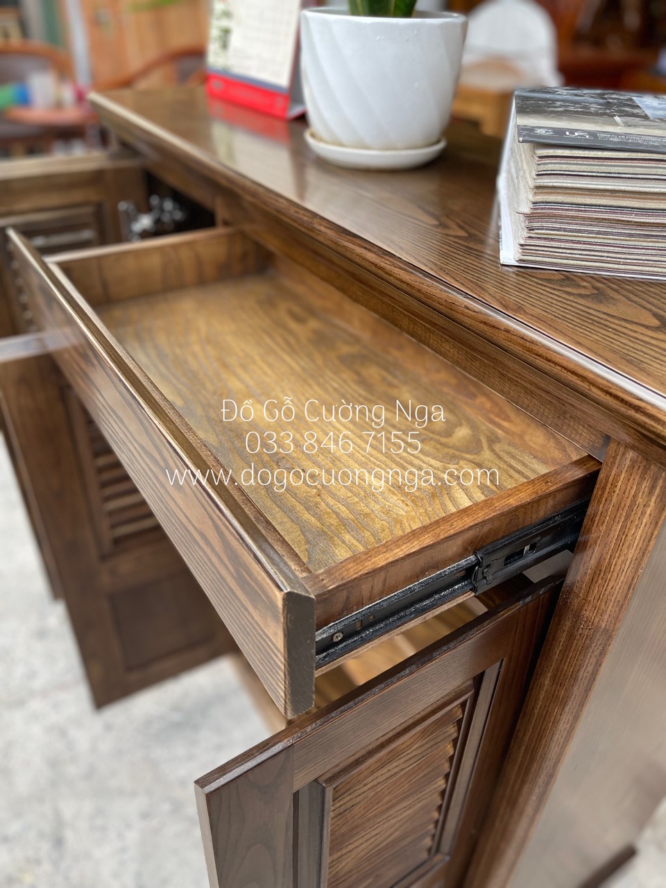 - Tủ còn có ngăn kéo và 1 hộc ở phía trên có thể dùng để đựng một số đồ vật khác.