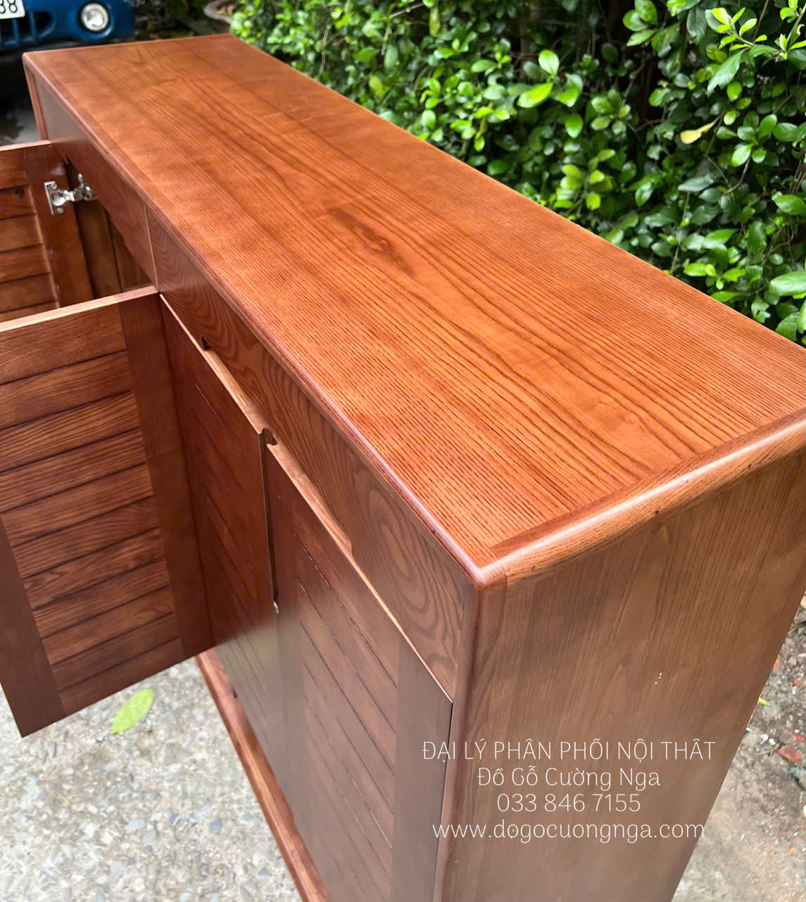 Tủ giày gỗ sồi nga 3 cánh mở - thiết kế bản lề giản chấn