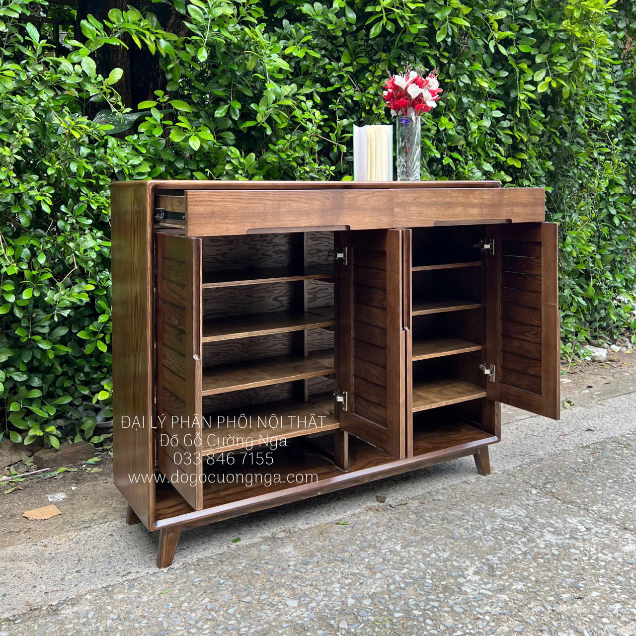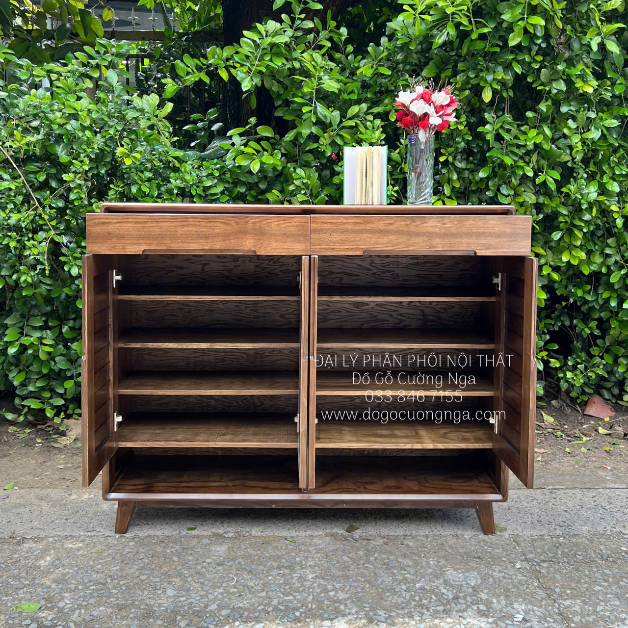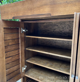 Tủ Giày Dép Gỗ Sồi Nga Lau Màu Óc Chó 4 Cánh Mở Lá Sách