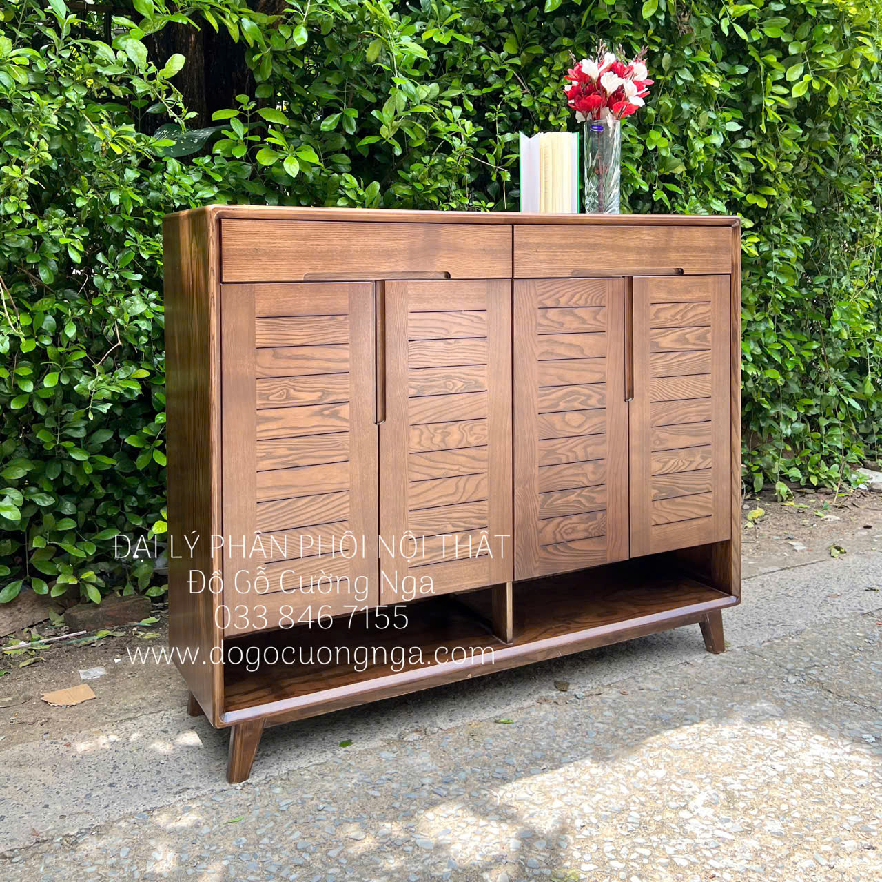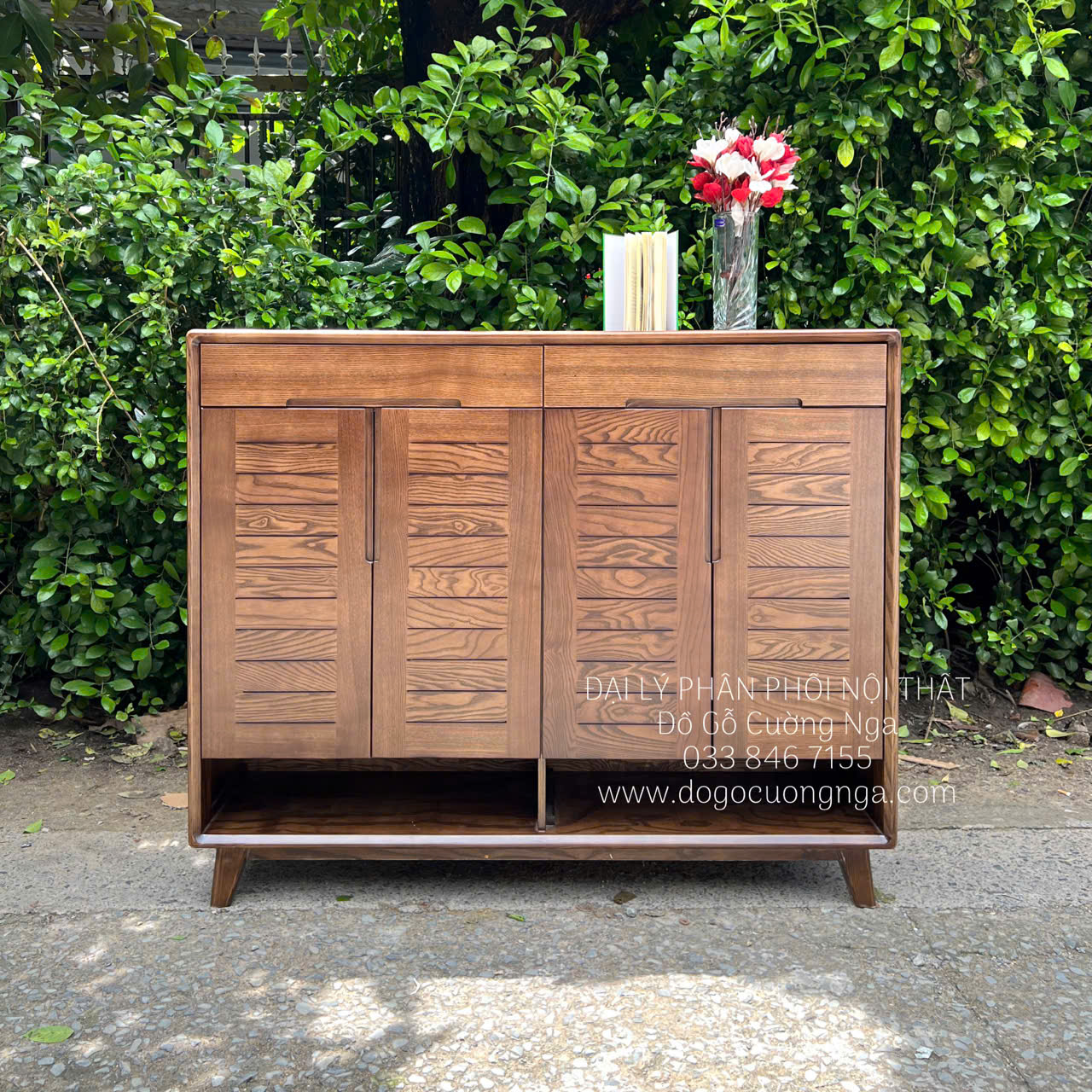 Tủ giày gỗ sồi nga thiết kế 4 cánh mở
