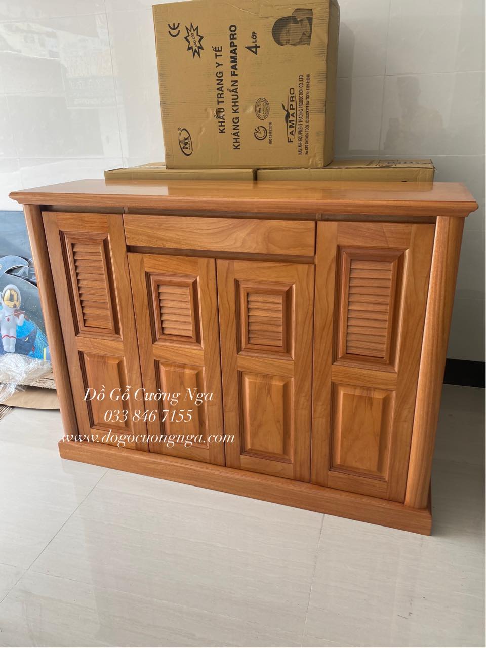 Tủ giày dép gỗ gõ đỏ 4 cánh