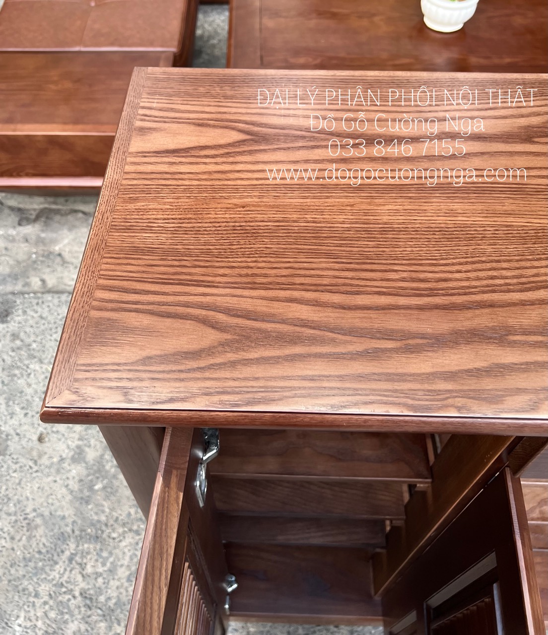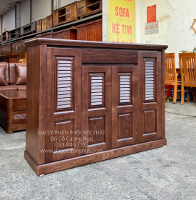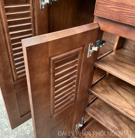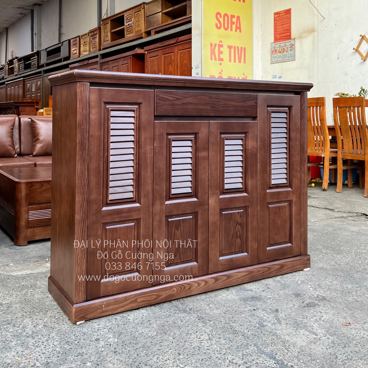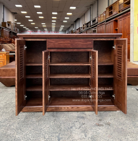 Tủ giày dép gỗ sồi lau màu óc chó 4 cánh bền đẹp
