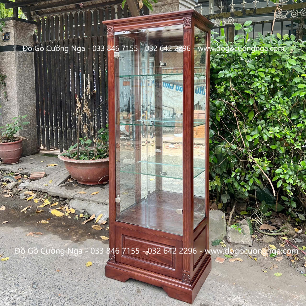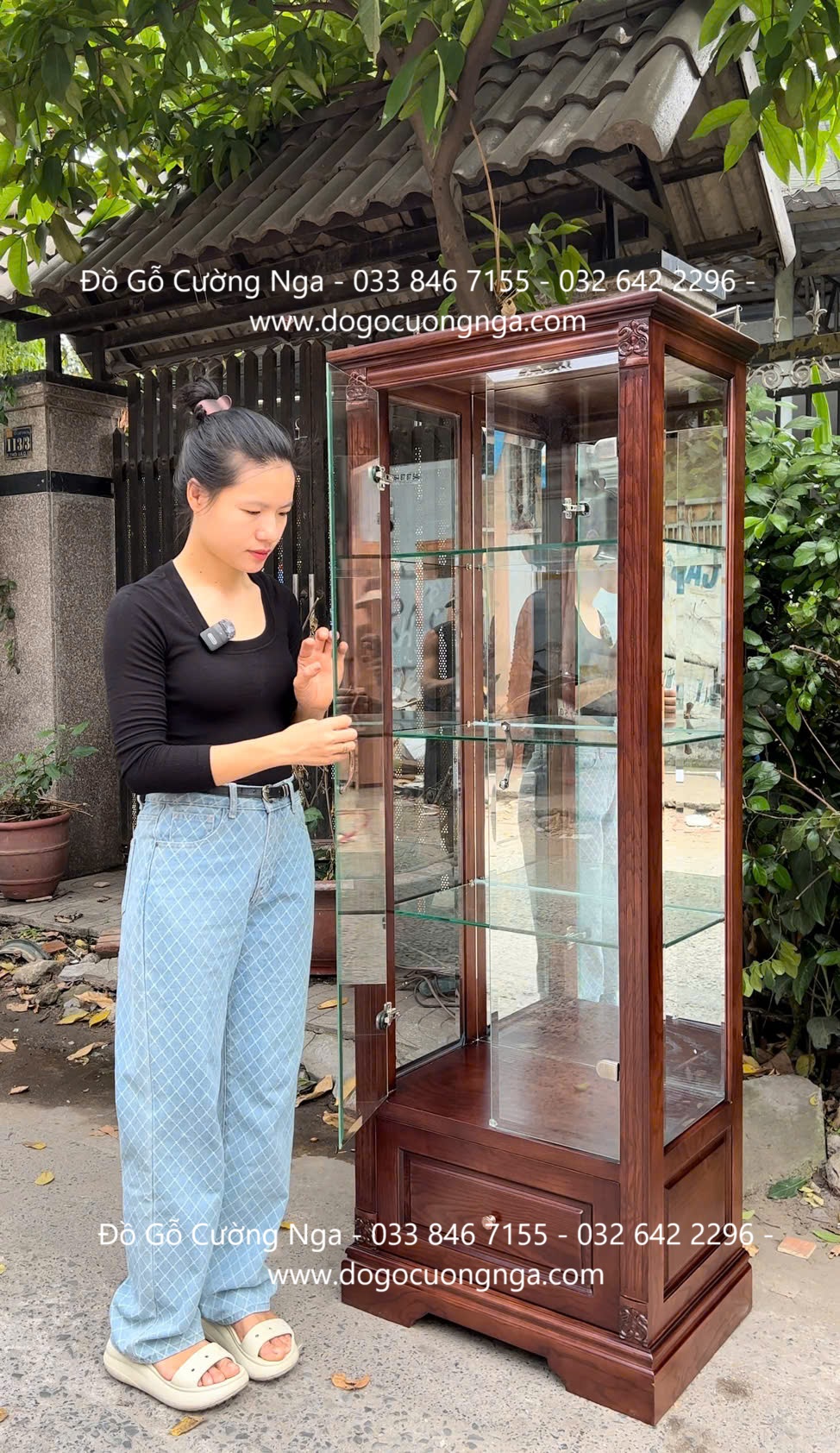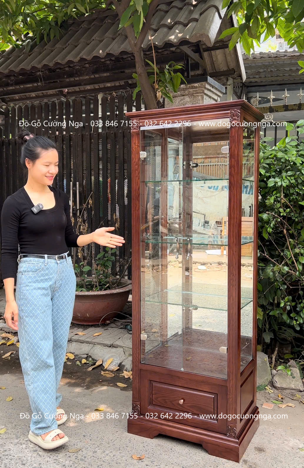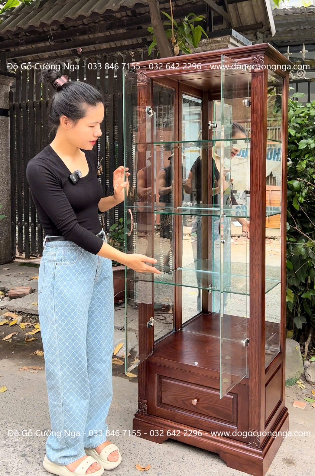 Tủ Ly Trưng Bày - Tủ Rượu Gỗ Sồi Nga Lau Màu Óc Chó Vuông 65cm Đẹp Mắt