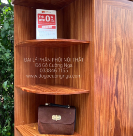 Tủ áo gỗ cẩm 3 cánh góc trang trí vế trái