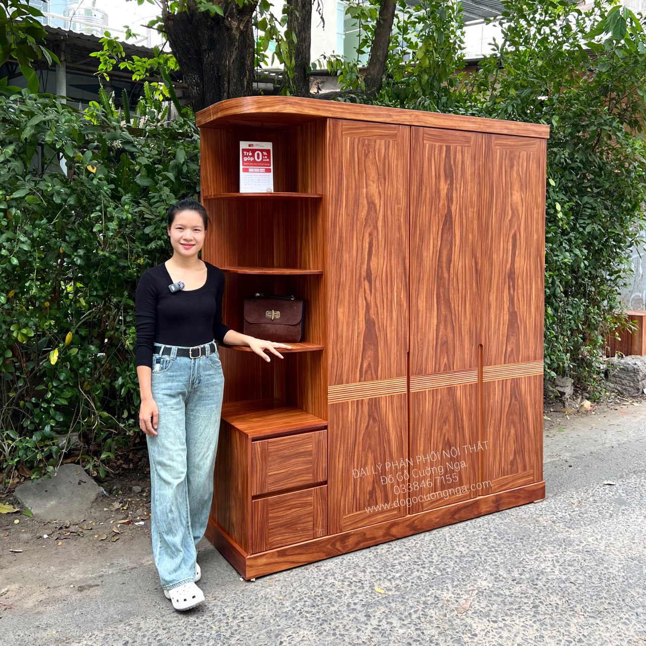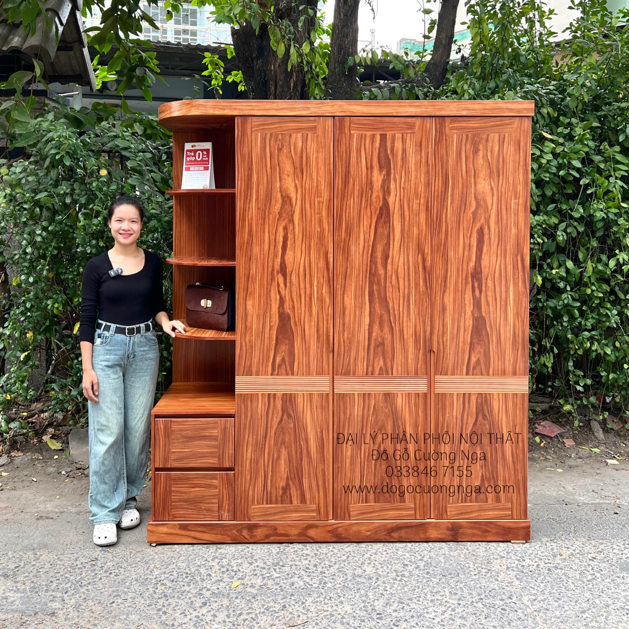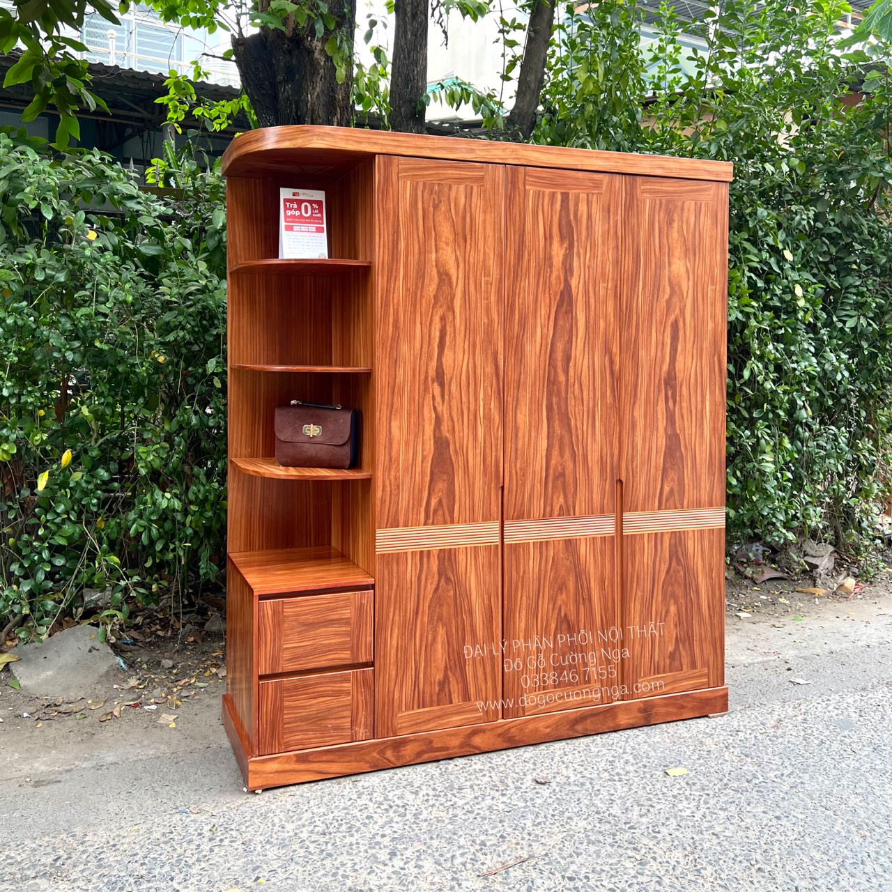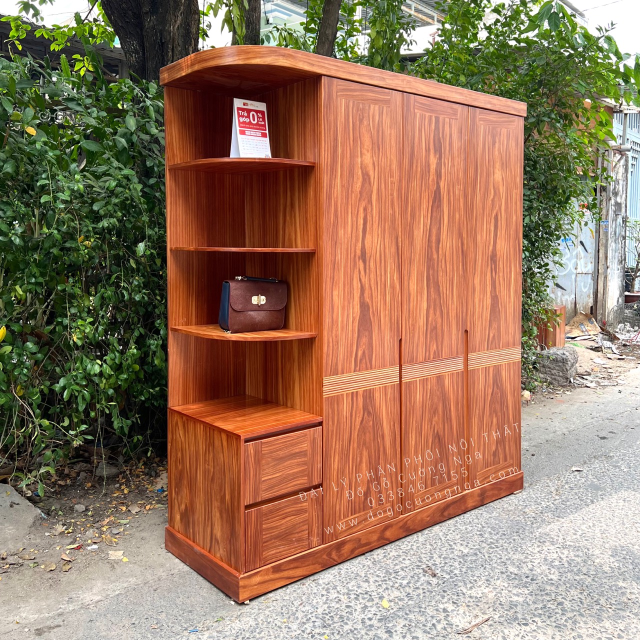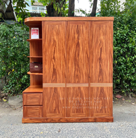Tủ Quần Áo Gỗ Cẩm 3 Cánh Kệ Trang Trí Đơn Giản Chất Lượng