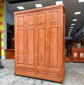 Tủ Quần Áo Gỗ Cẩm Vân 4 Cánh Cao 2 Tầng Thiết Kế Tiện Nghi