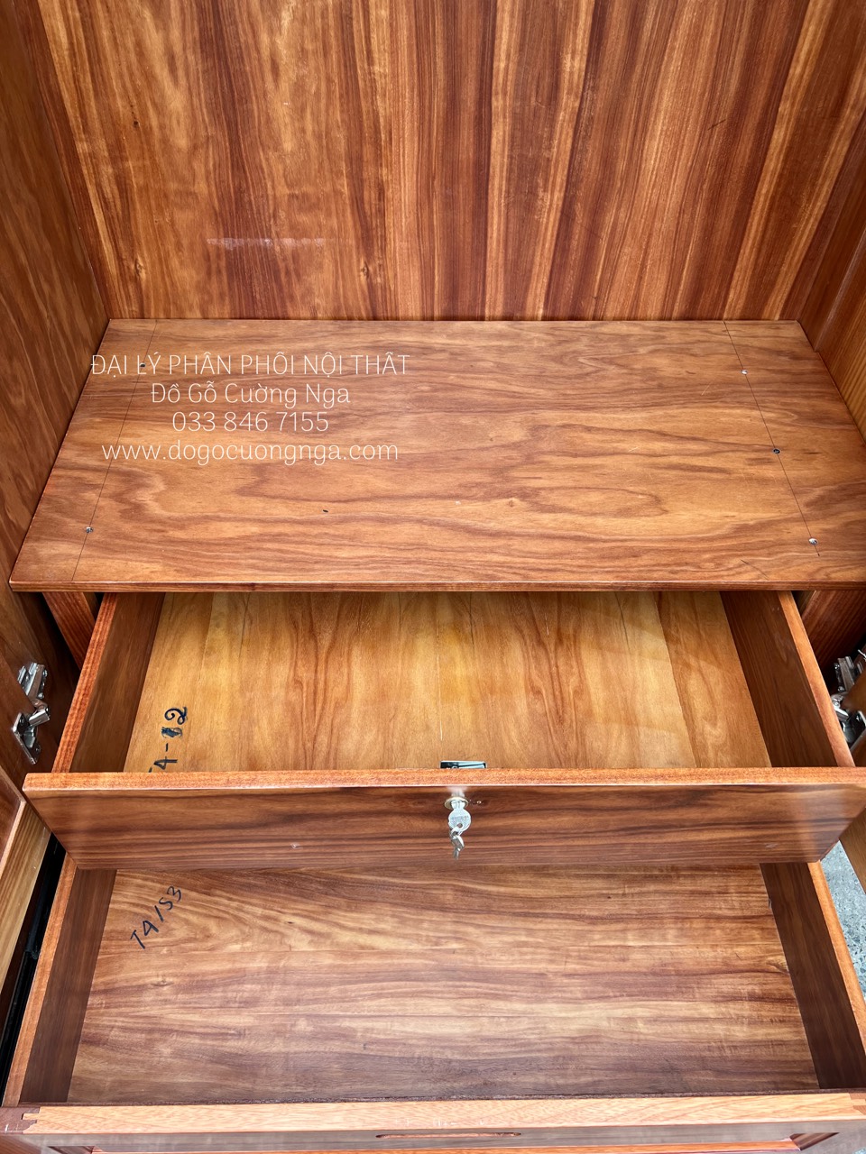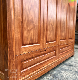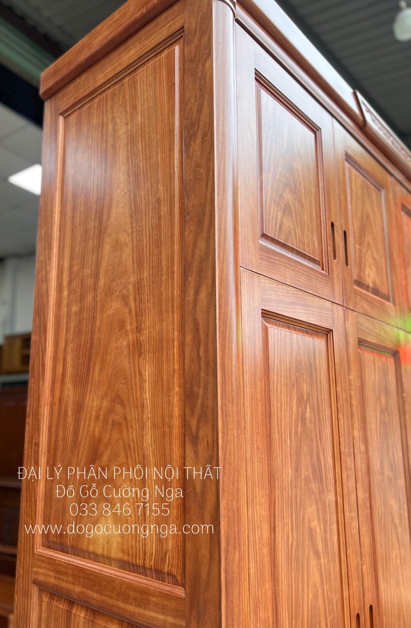 Chi tiết tủ áo gỗ cẩm vân 4 cánh 2 tầng