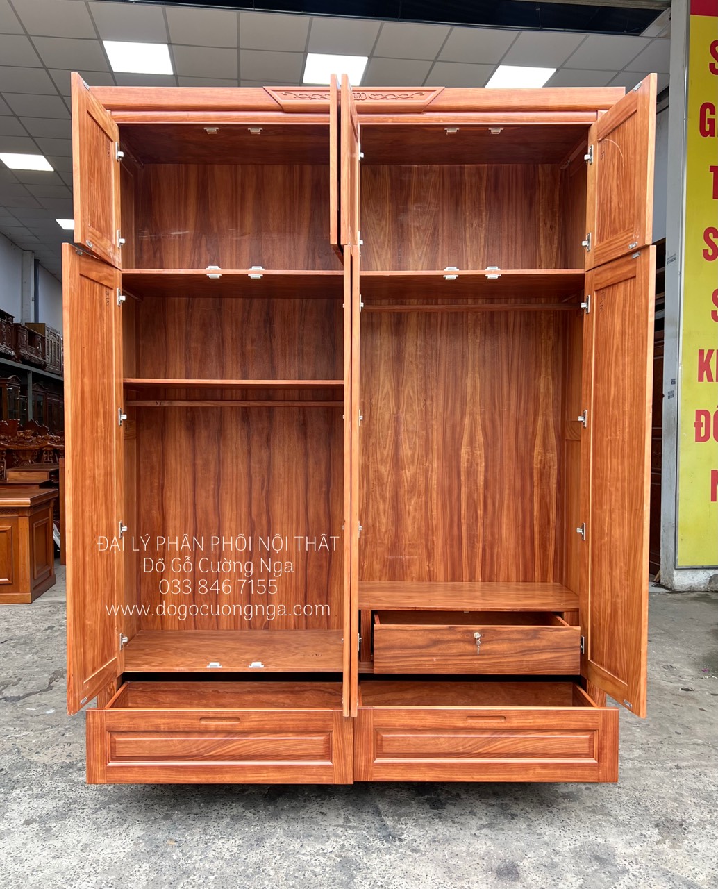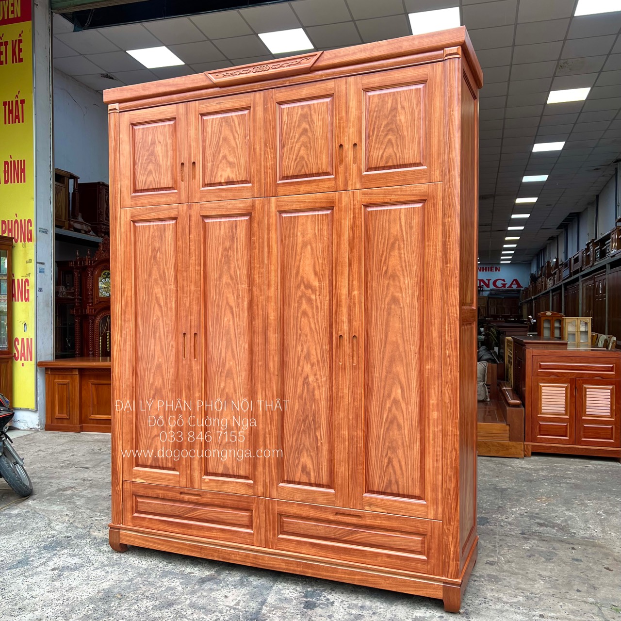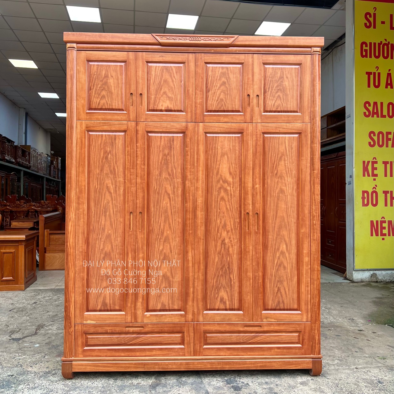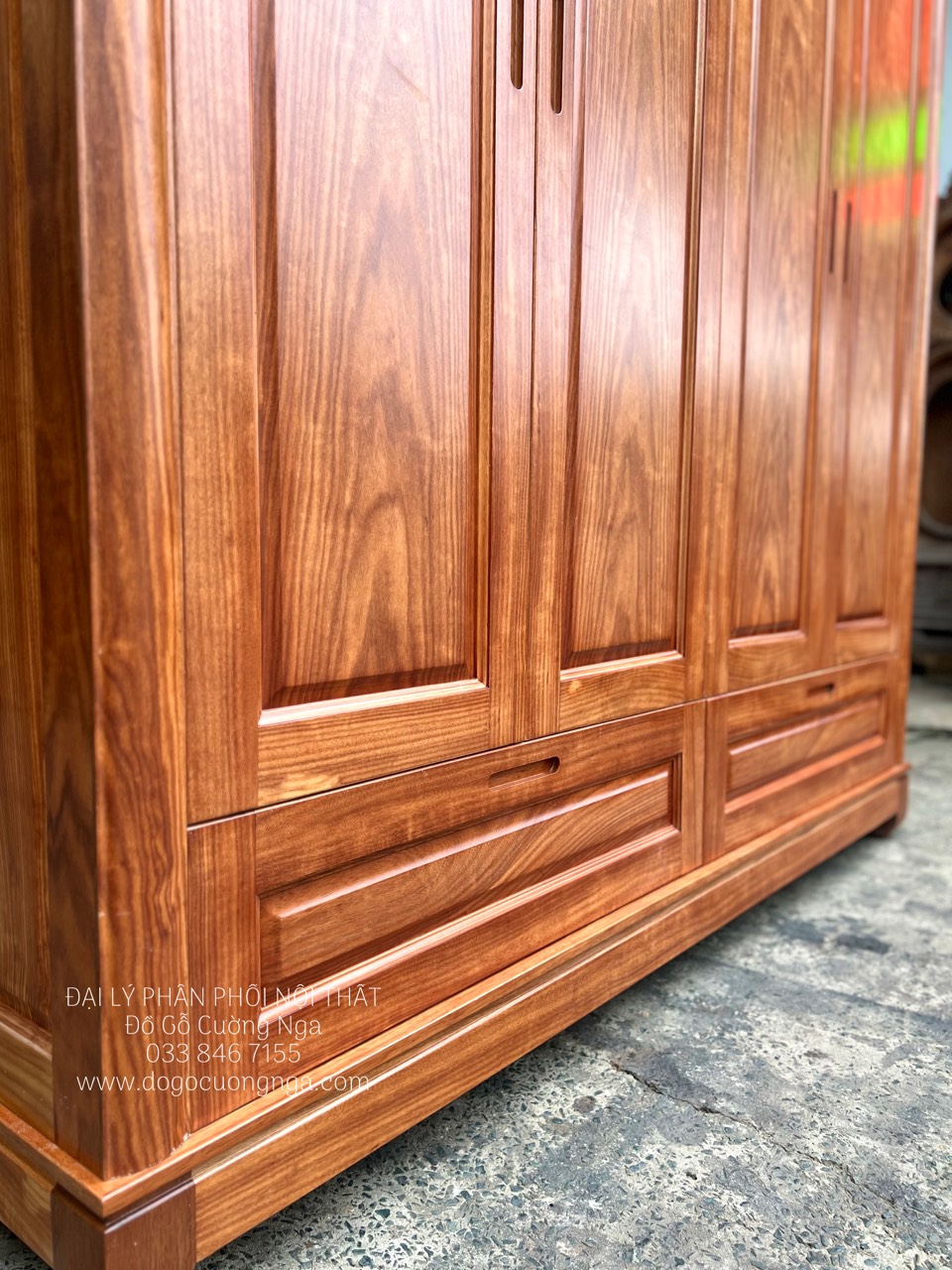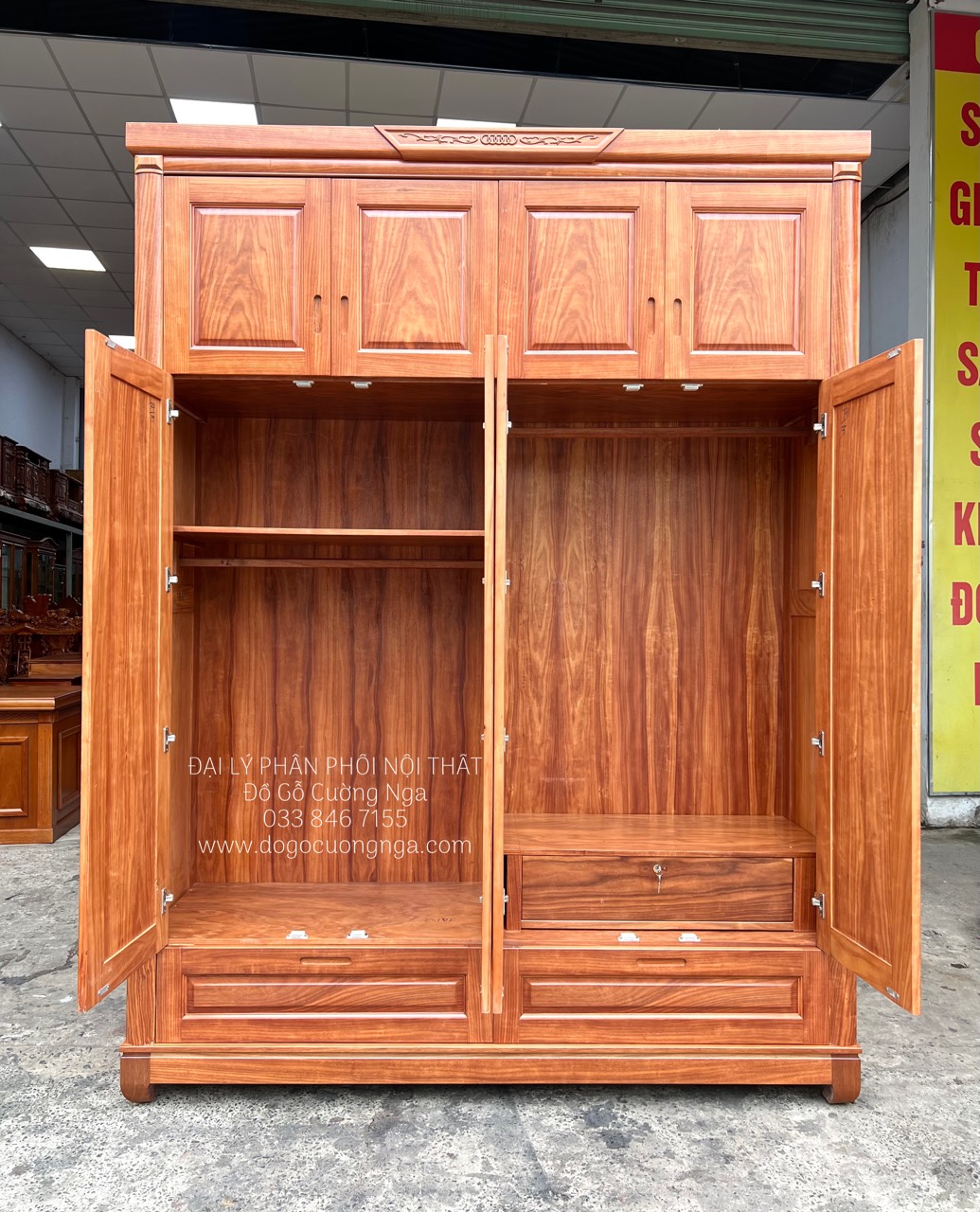 Tủ áo gỗ cẩm vân 4 cánh 2 tầng cao cấp