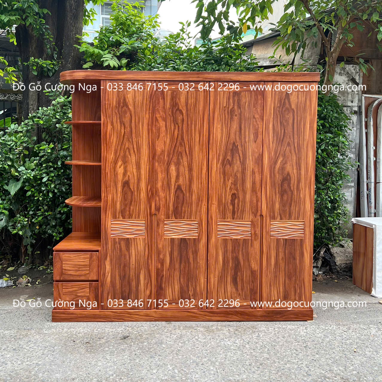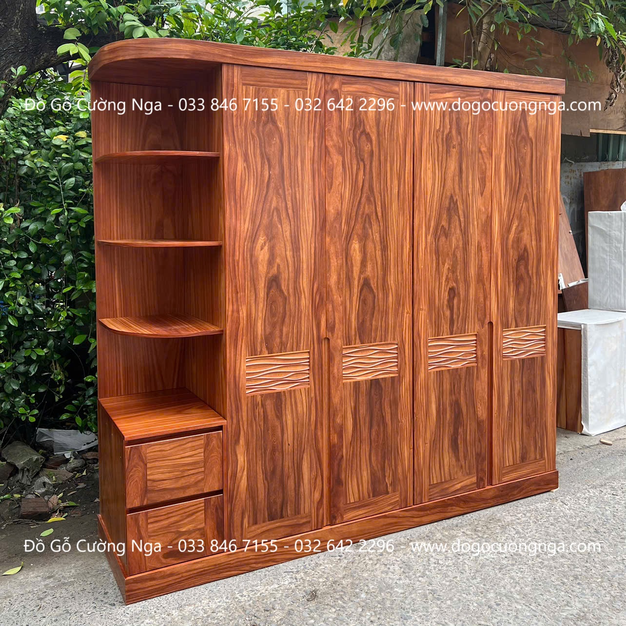 Tủ Quần Áo Gỗ Cẩm Vân 4 Cánh Kết Hợp Góc Trang Trí Hiện Đại