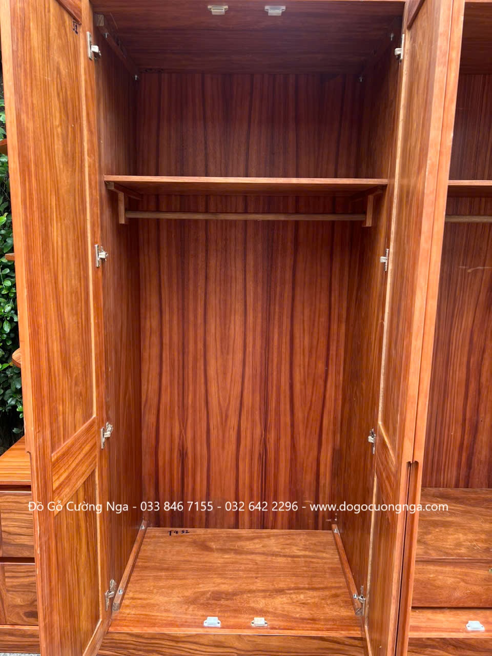 Thiết kế bên trong tủ áo gỗ cẩm vân 4 cánh