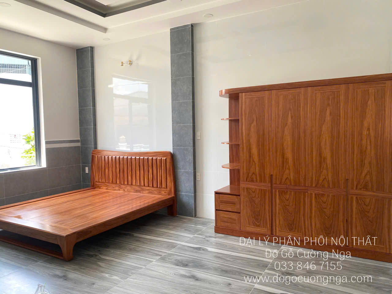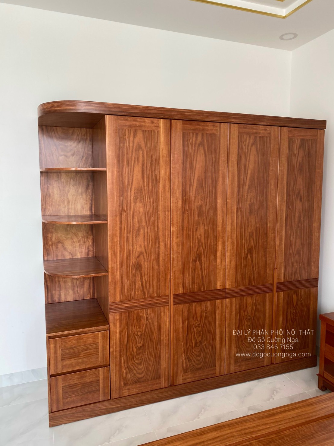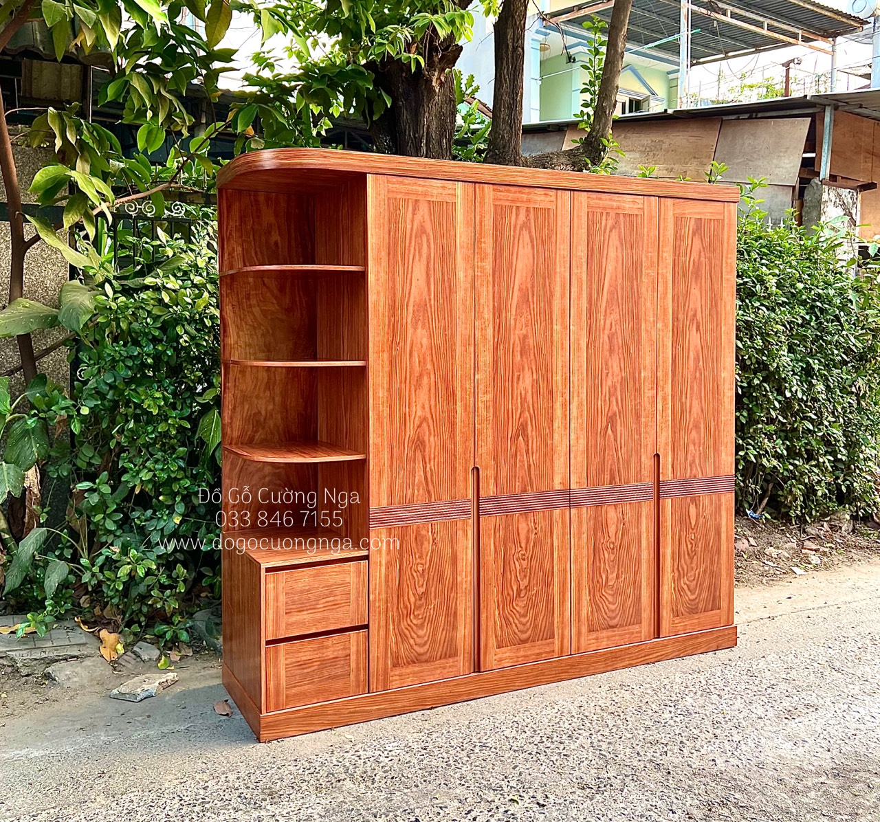 Tủ Áo Gỗ Cẩm 4 Cánh Góc Hiện Đại