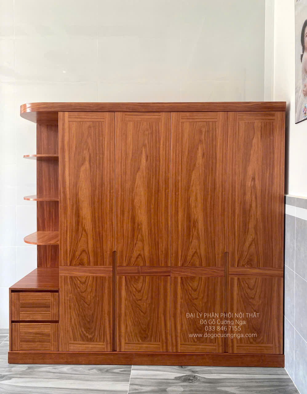 Chi tiết tủ áo gỗ cẩm vân 4 cánh góc hiện đại