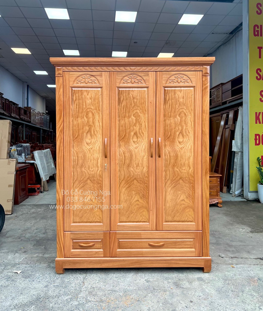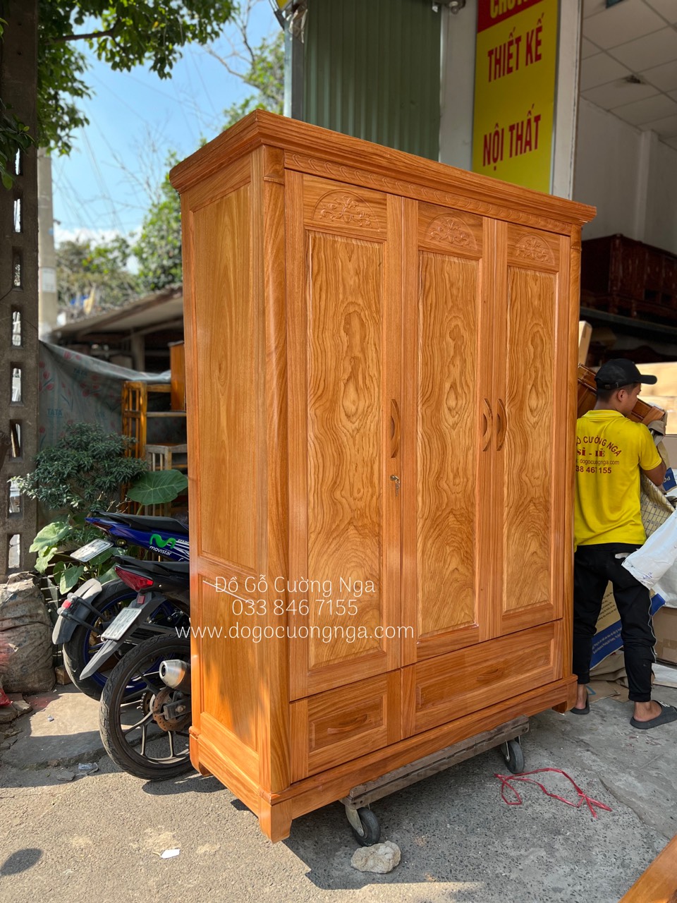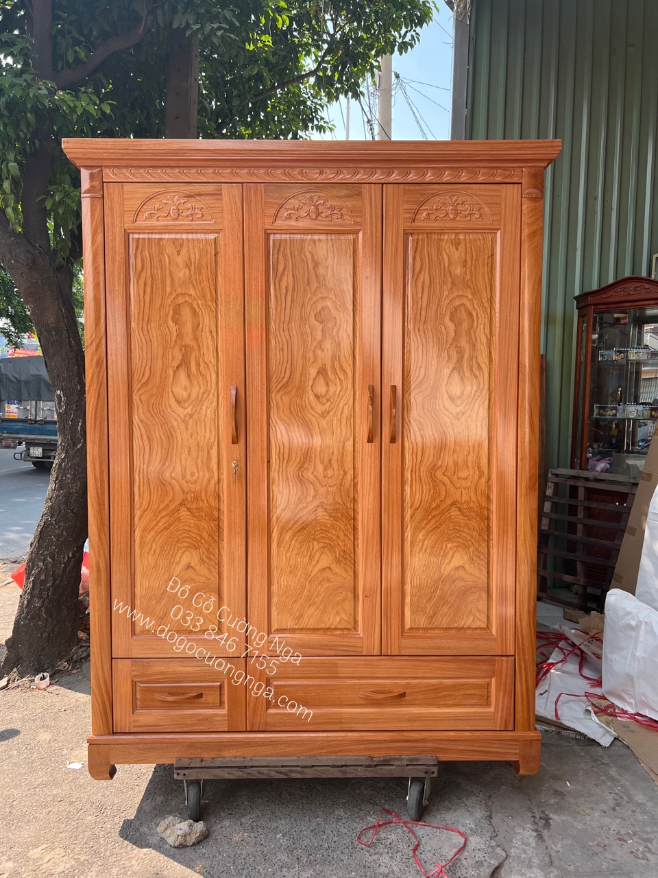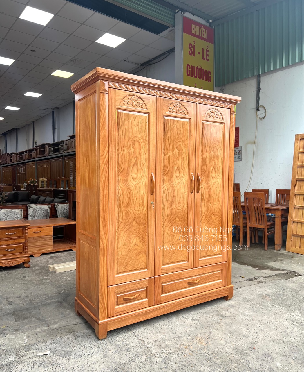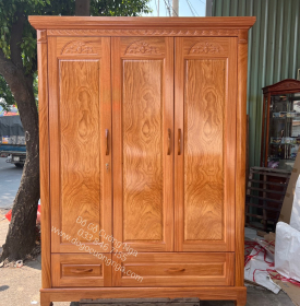 Tủ quần áo gỗ gõ đỏ 3 cánh cao cấp