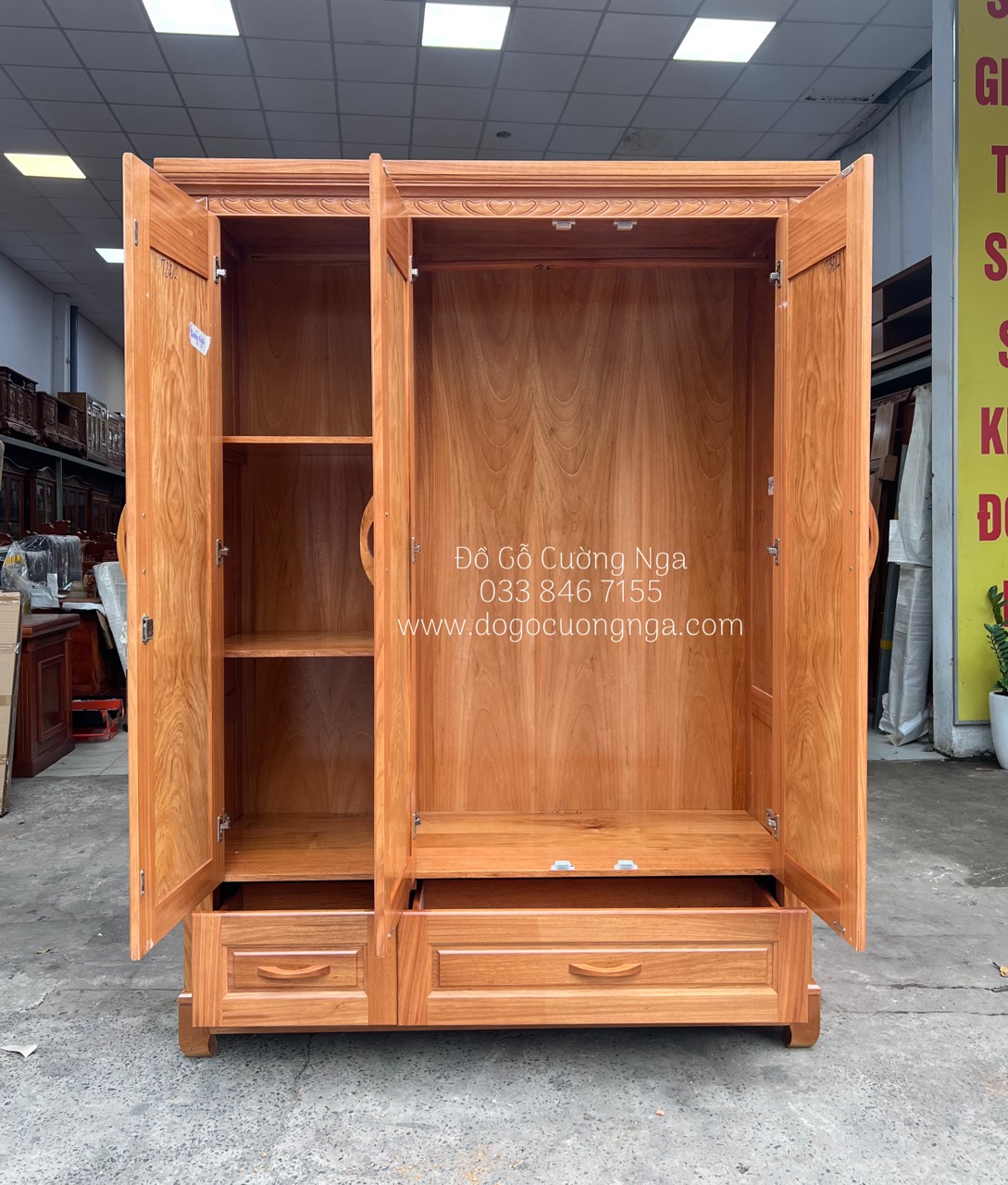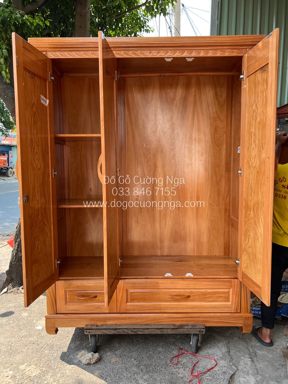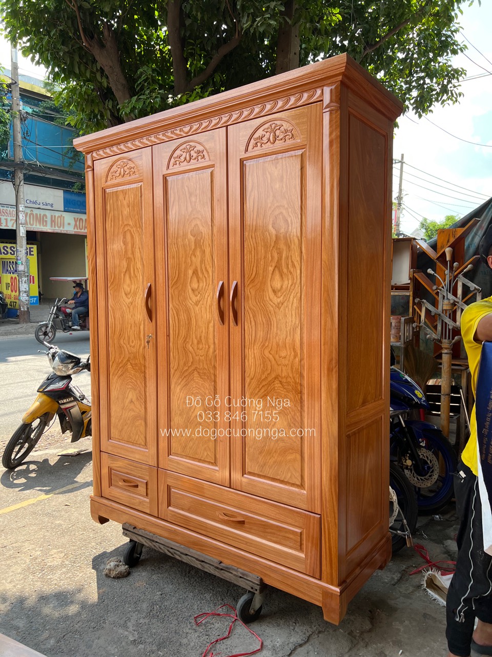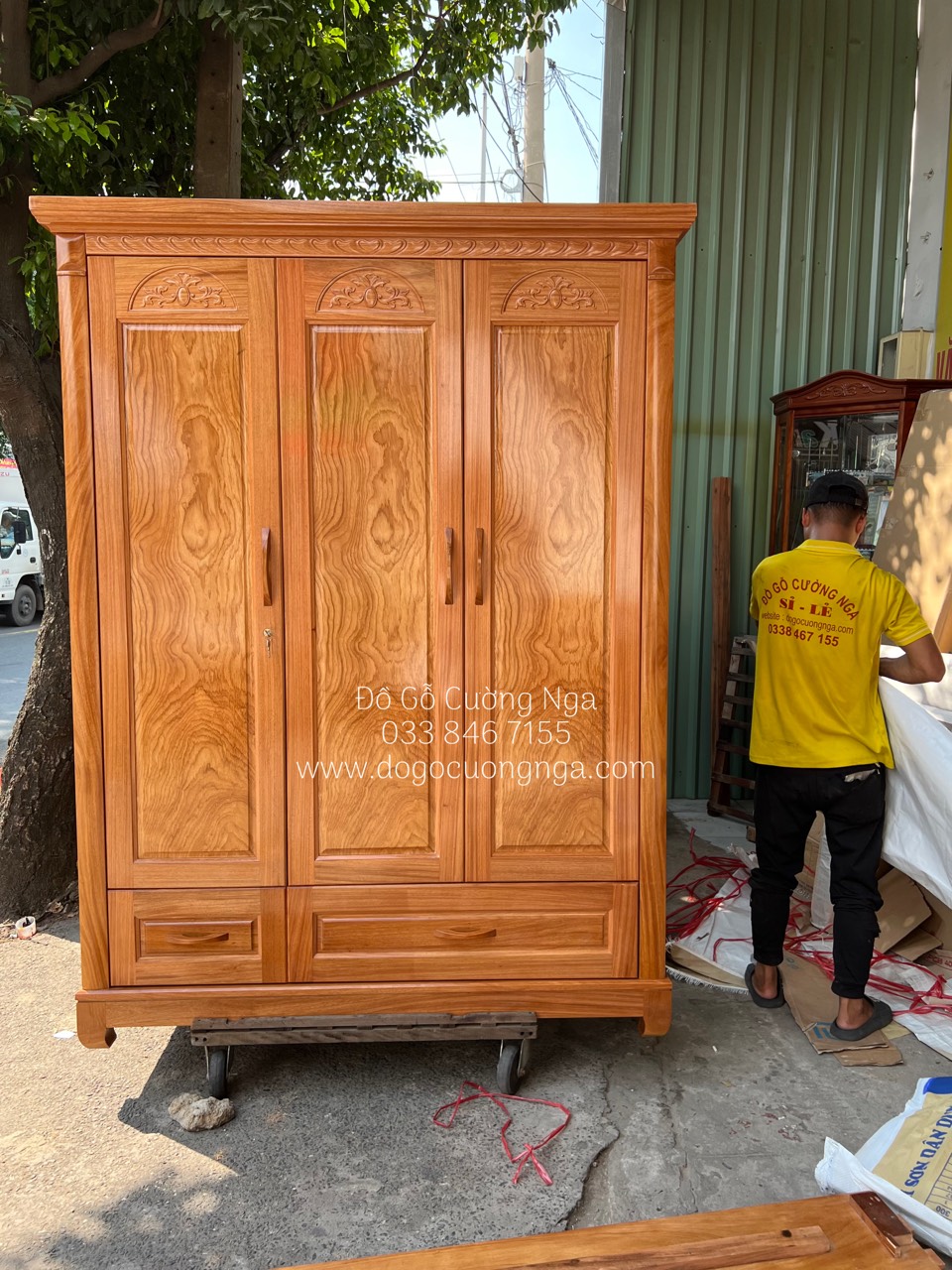 Tủ quần áo gỗ gõ đỏ 3 cánh cao cấp