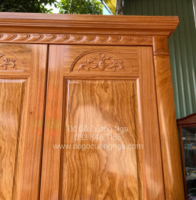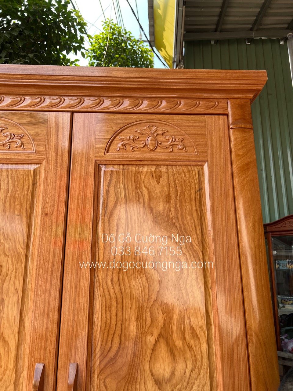 Tủ quần áo gỗ gõ đỏ 3 cánh cao cấp - mẫu hoa vòm