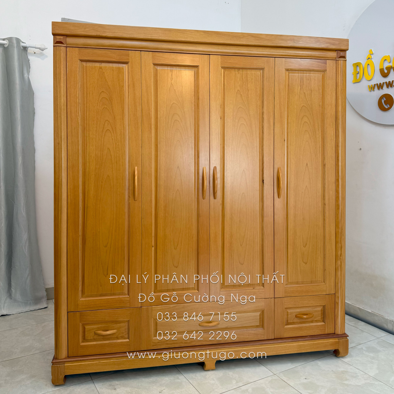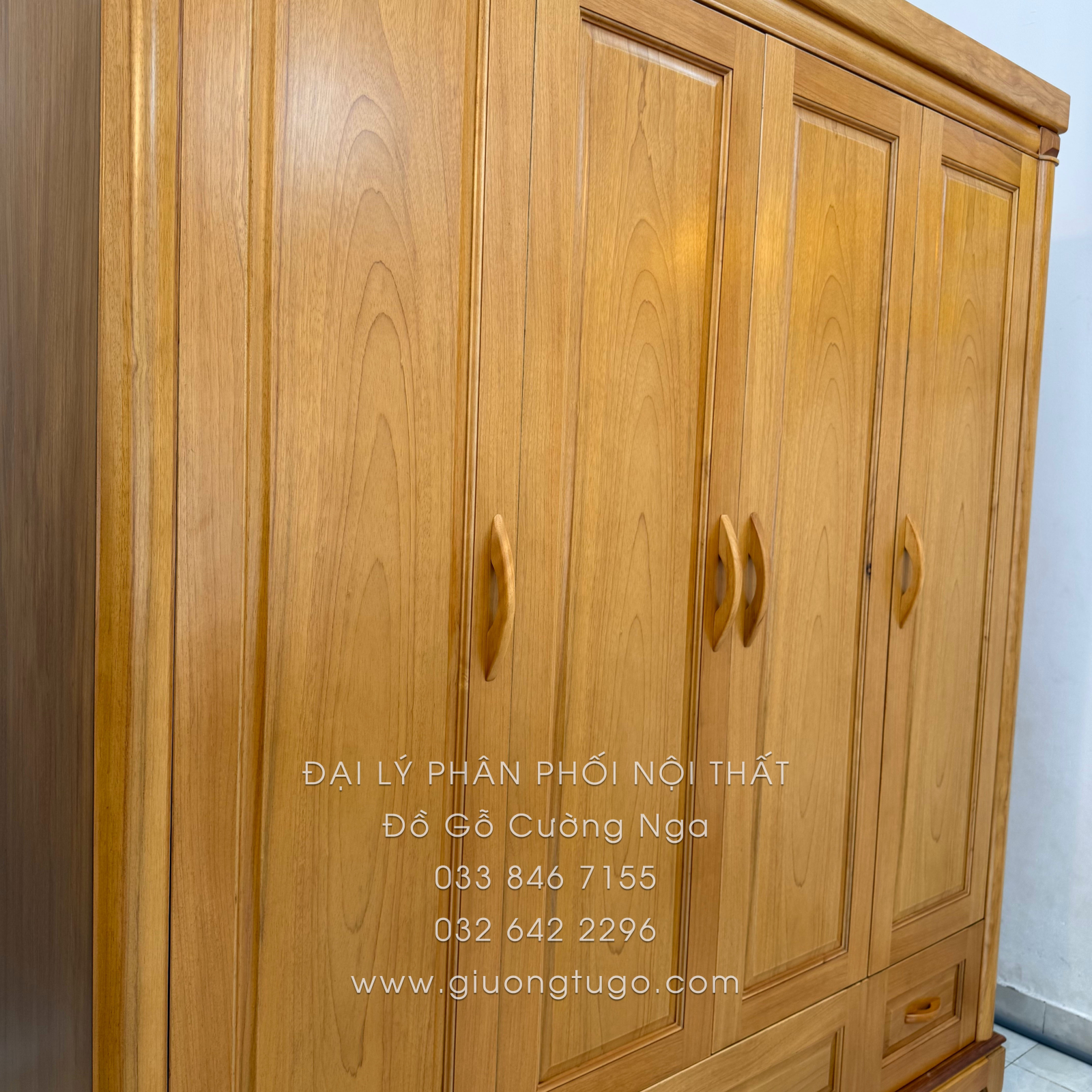 Tủ Quần Áo Gỗ Gõ Đỏ 4 Cánh 1m9 Sang Trọng