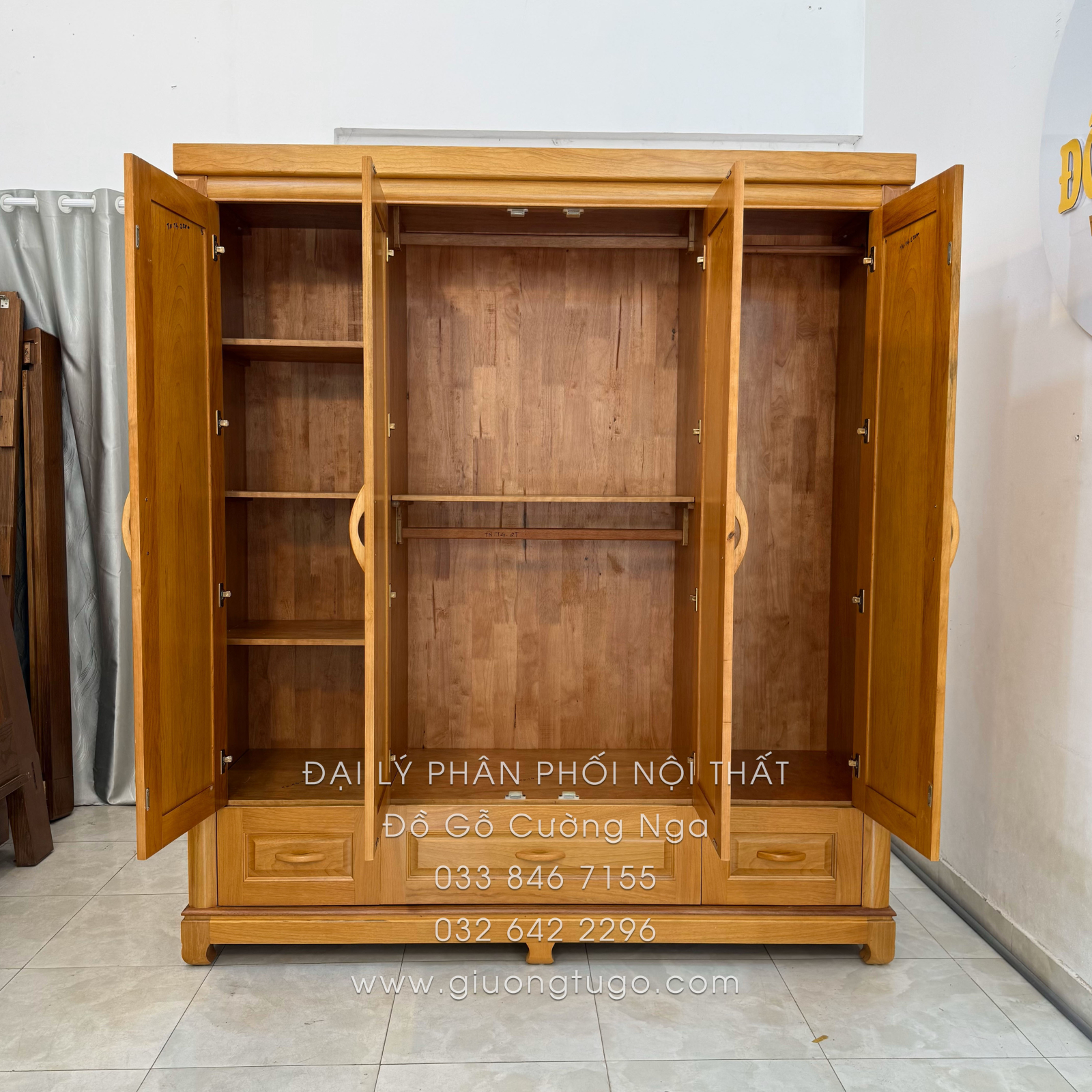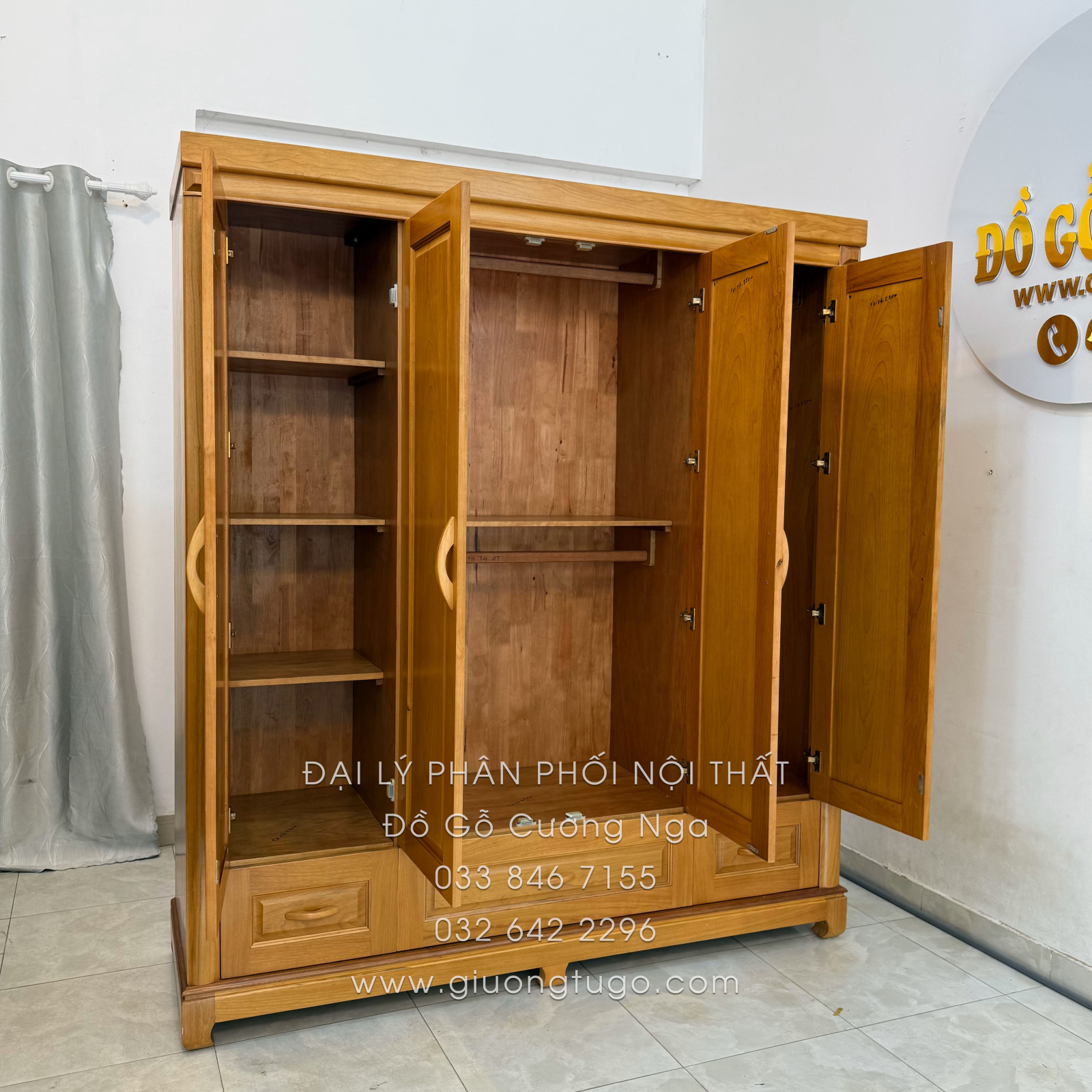 Thông tin chi tiết Tủ Quần Áo Gỗ Gõ Đỏ 4 Cánh 1m9 Sang Trọng