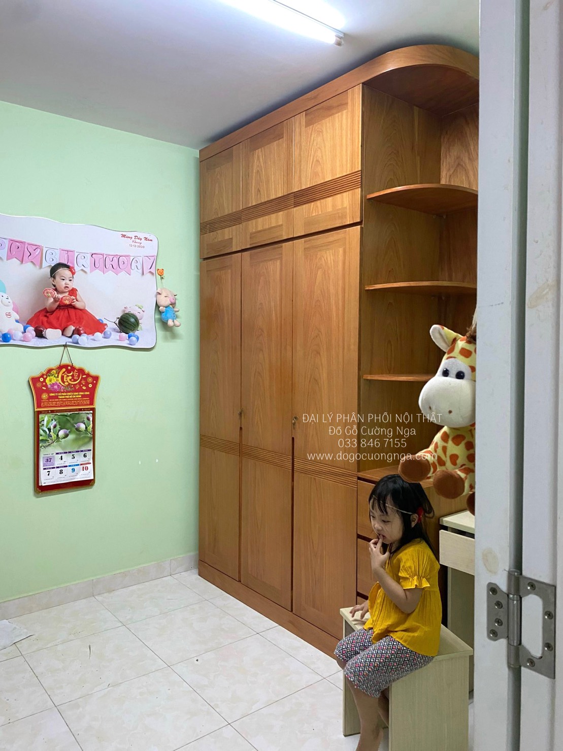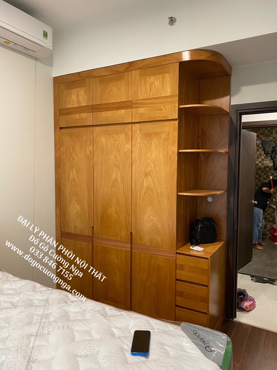 Tủ áo gỗ gõ đỏ kịch trần giao khách
