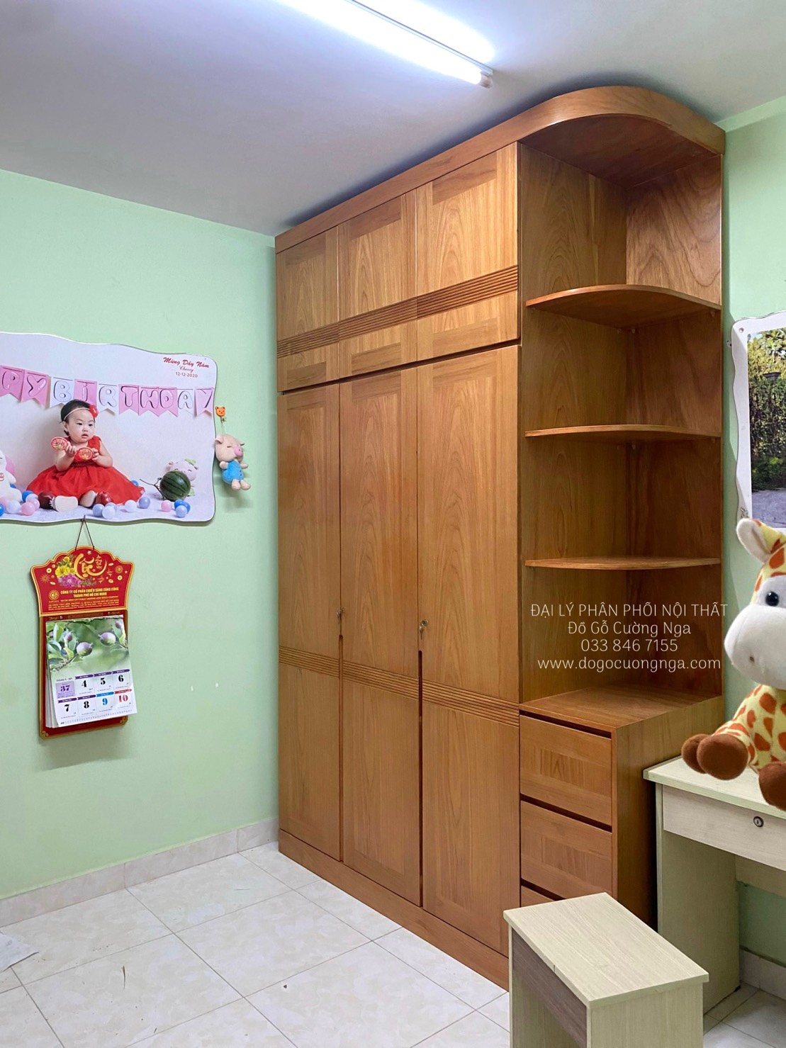 Tủ Quần Áo Gỗ Gõ Đỏ 4 Cánh Góc 2 Tầng Hiện Đại