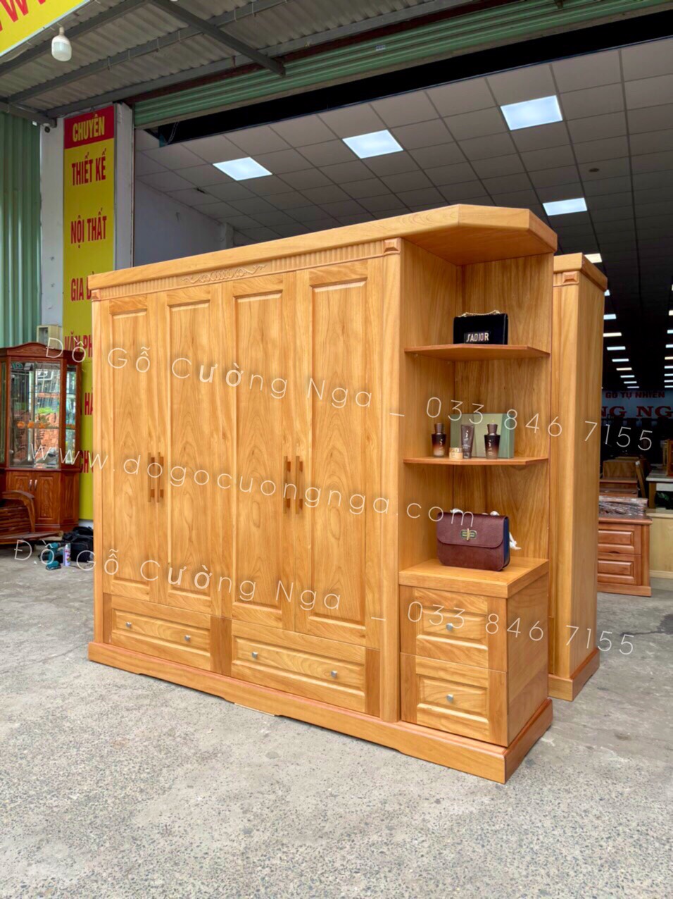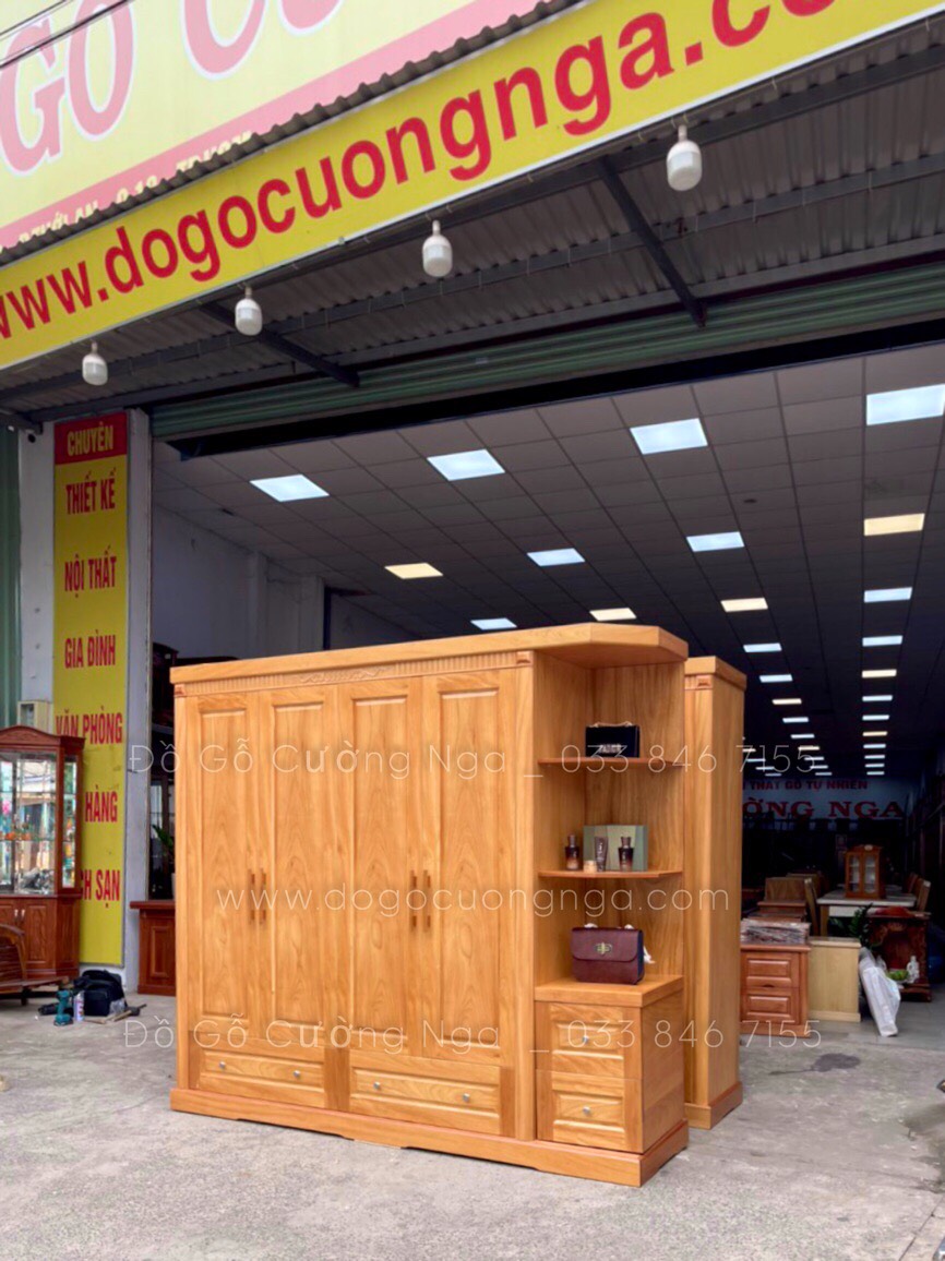Tủ áo gỗ gõ đỏ 4 cánh góc giao khách hiện đại