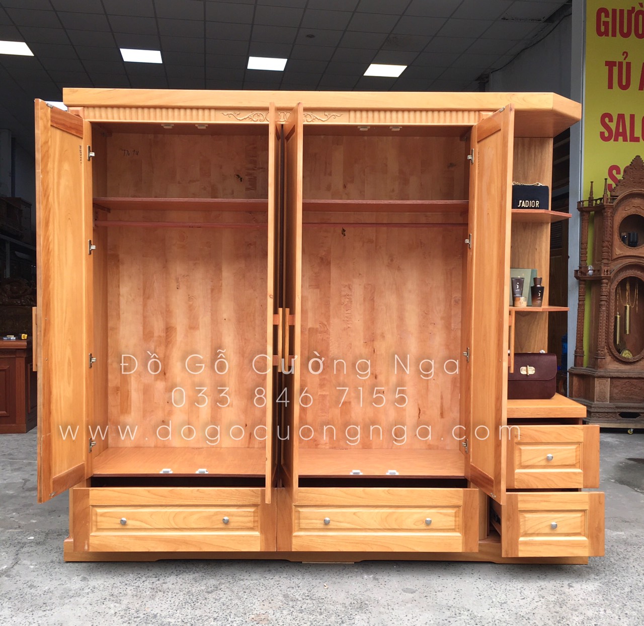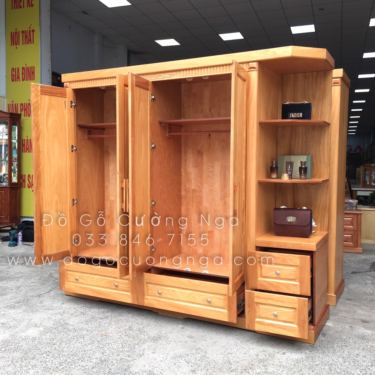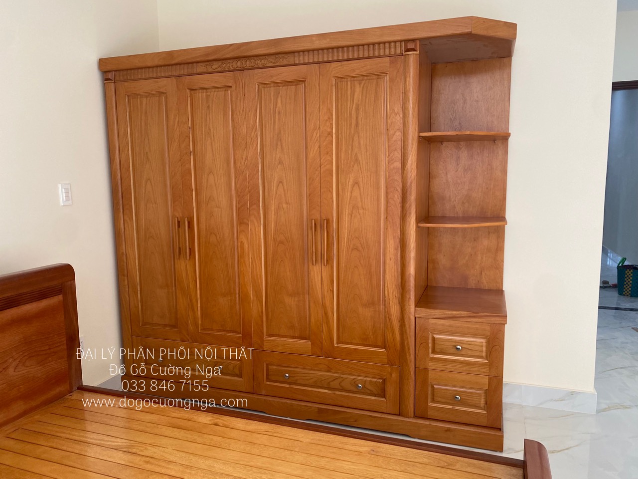 Tủ áo gỗ gõ đỏ 4 cánh góc trang trí