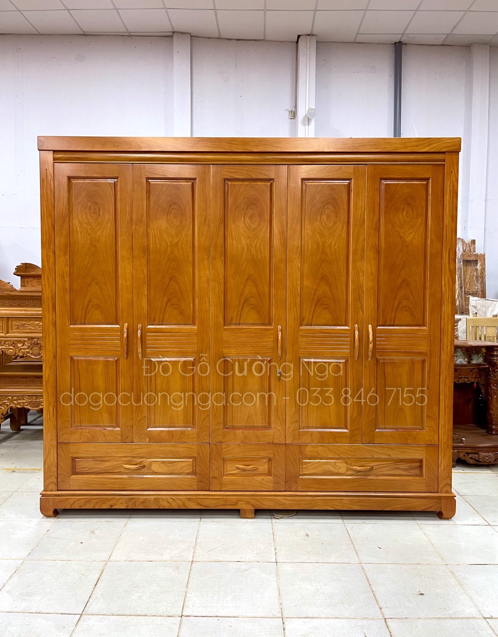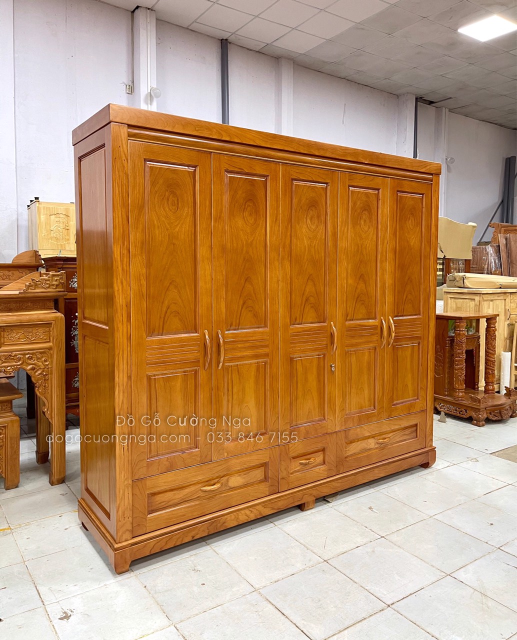 Tủ quần áo gỗ gõ đỏ tự nhiên 5 cánh 3 buồng lớn