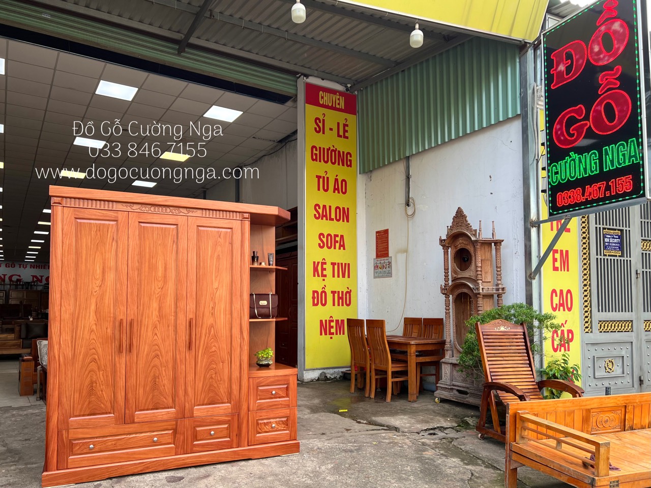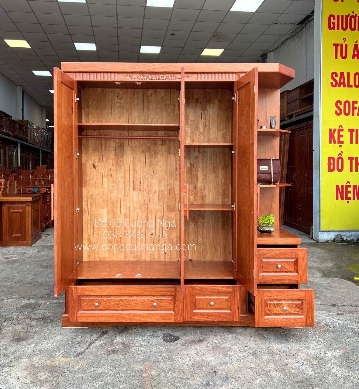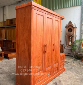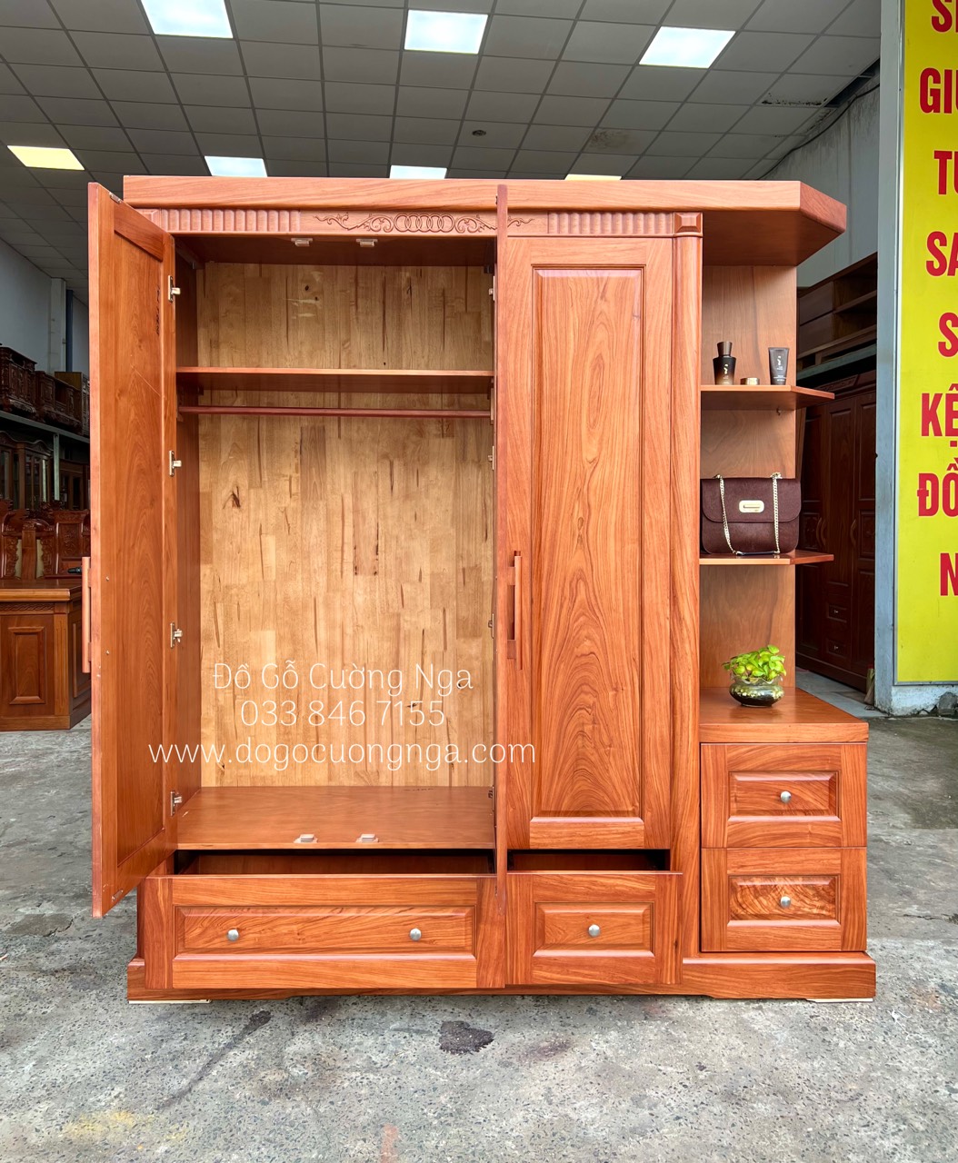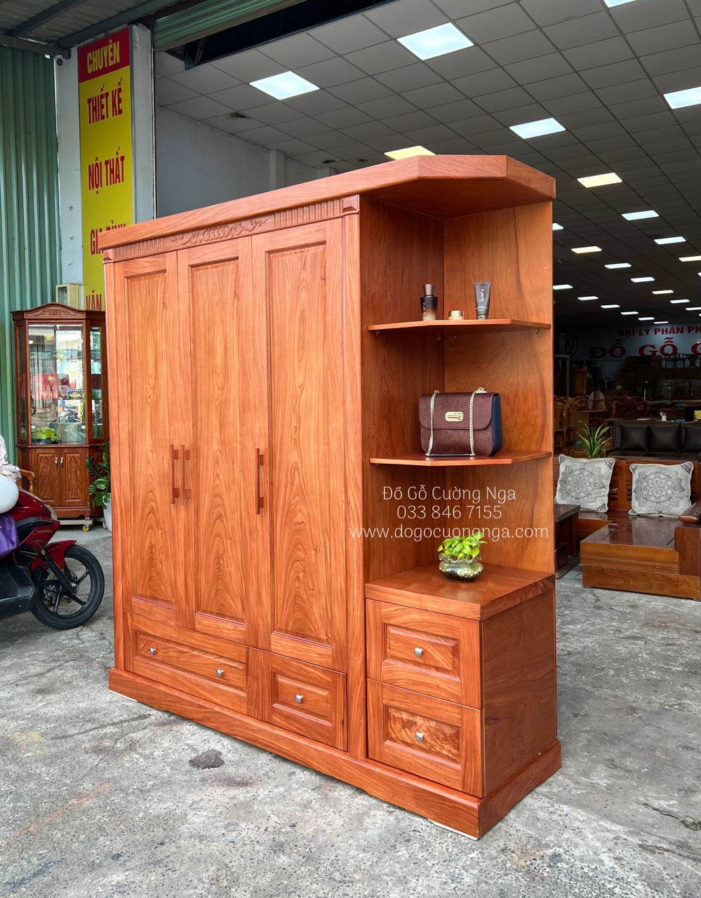 Tủ quần áo gỗ hương đá 3 cánh 1m9 - vế phải