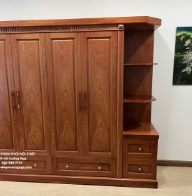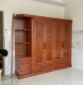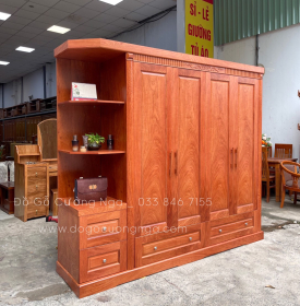 Tủ áo gỗ hương đá 4 cánh góc giao khách