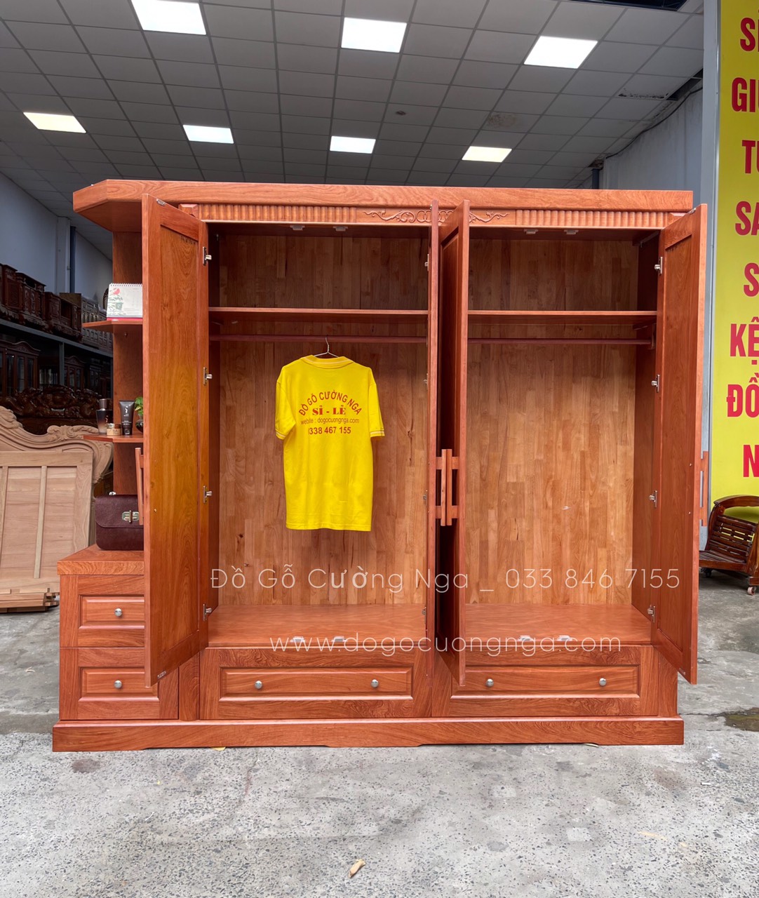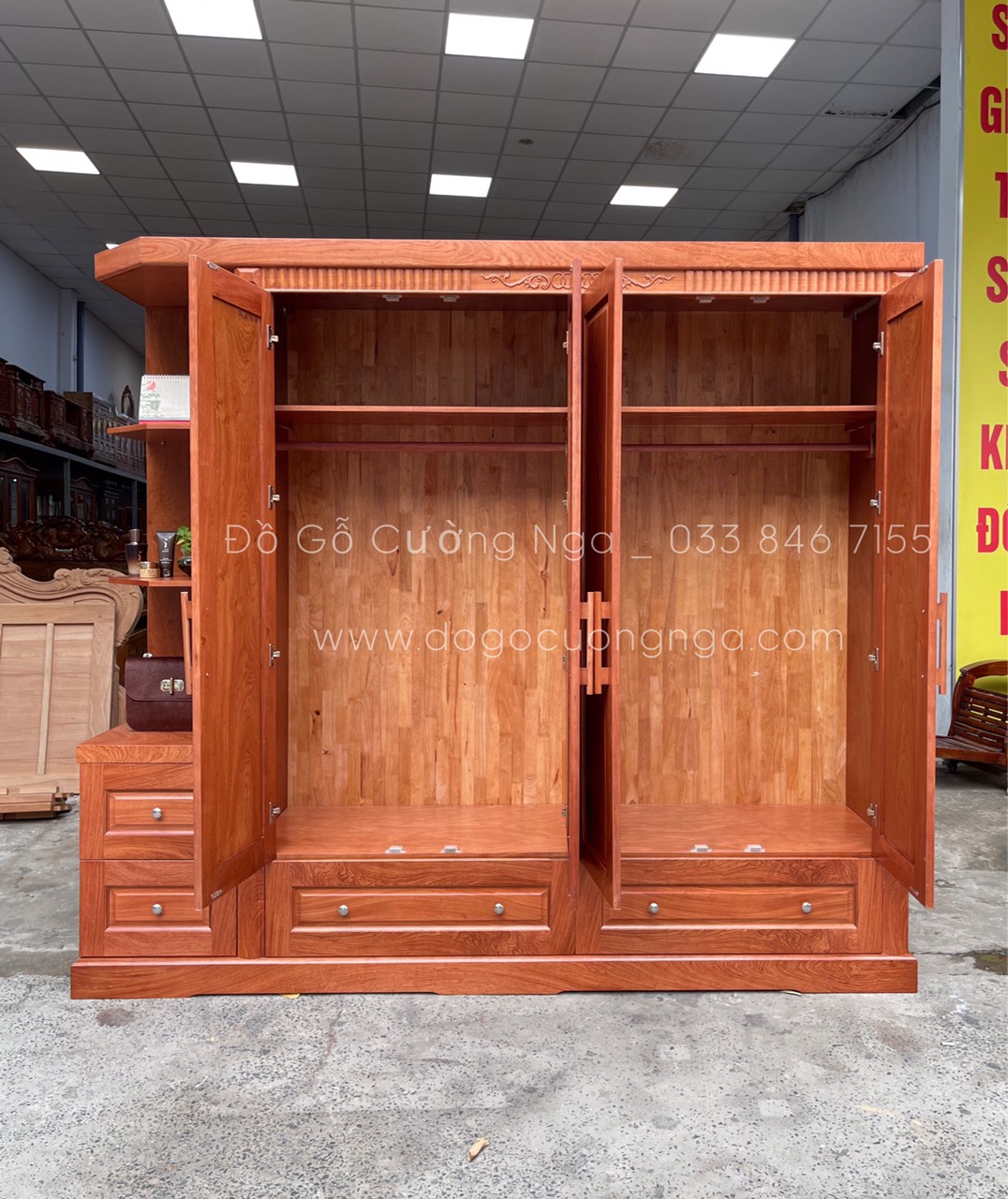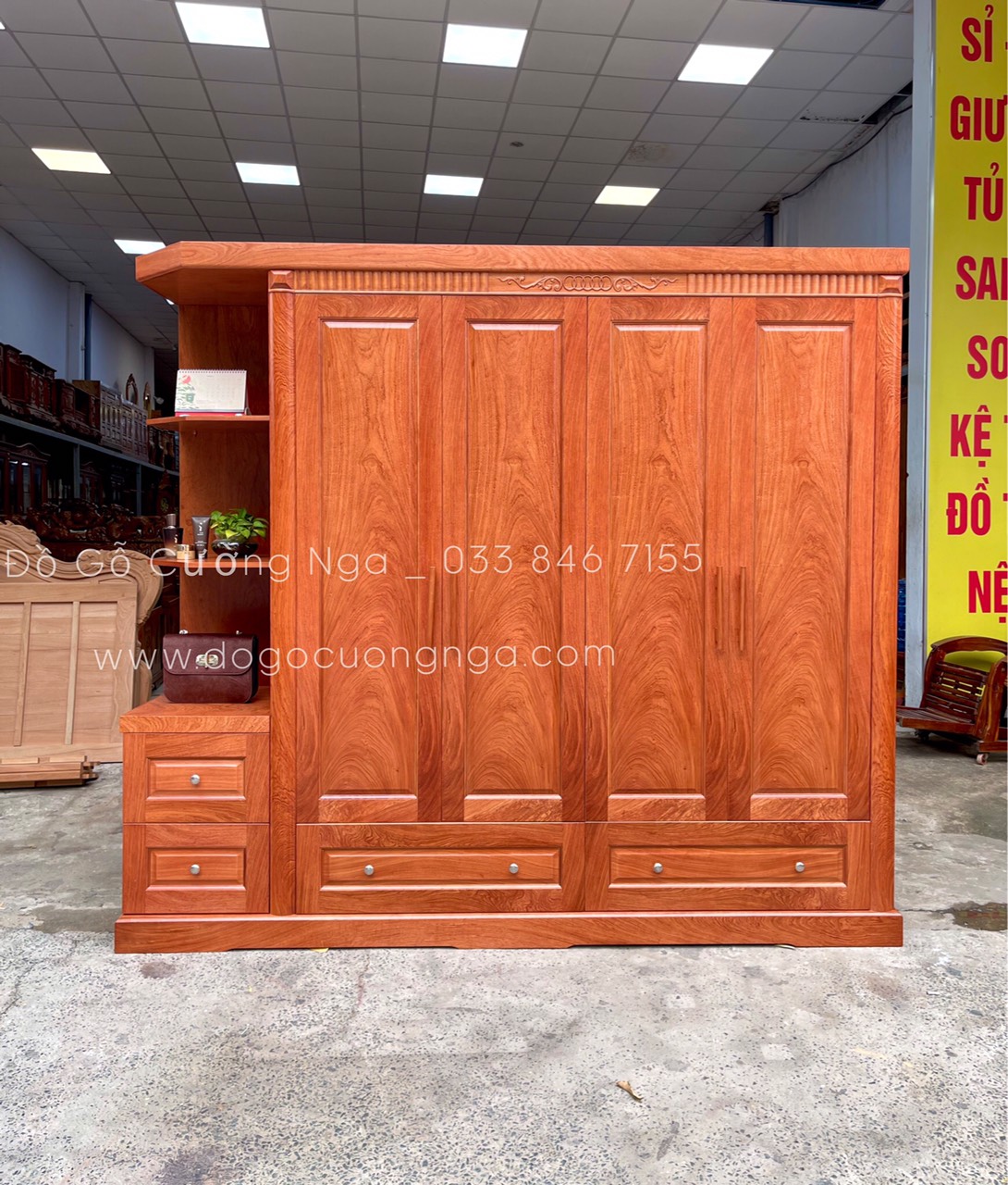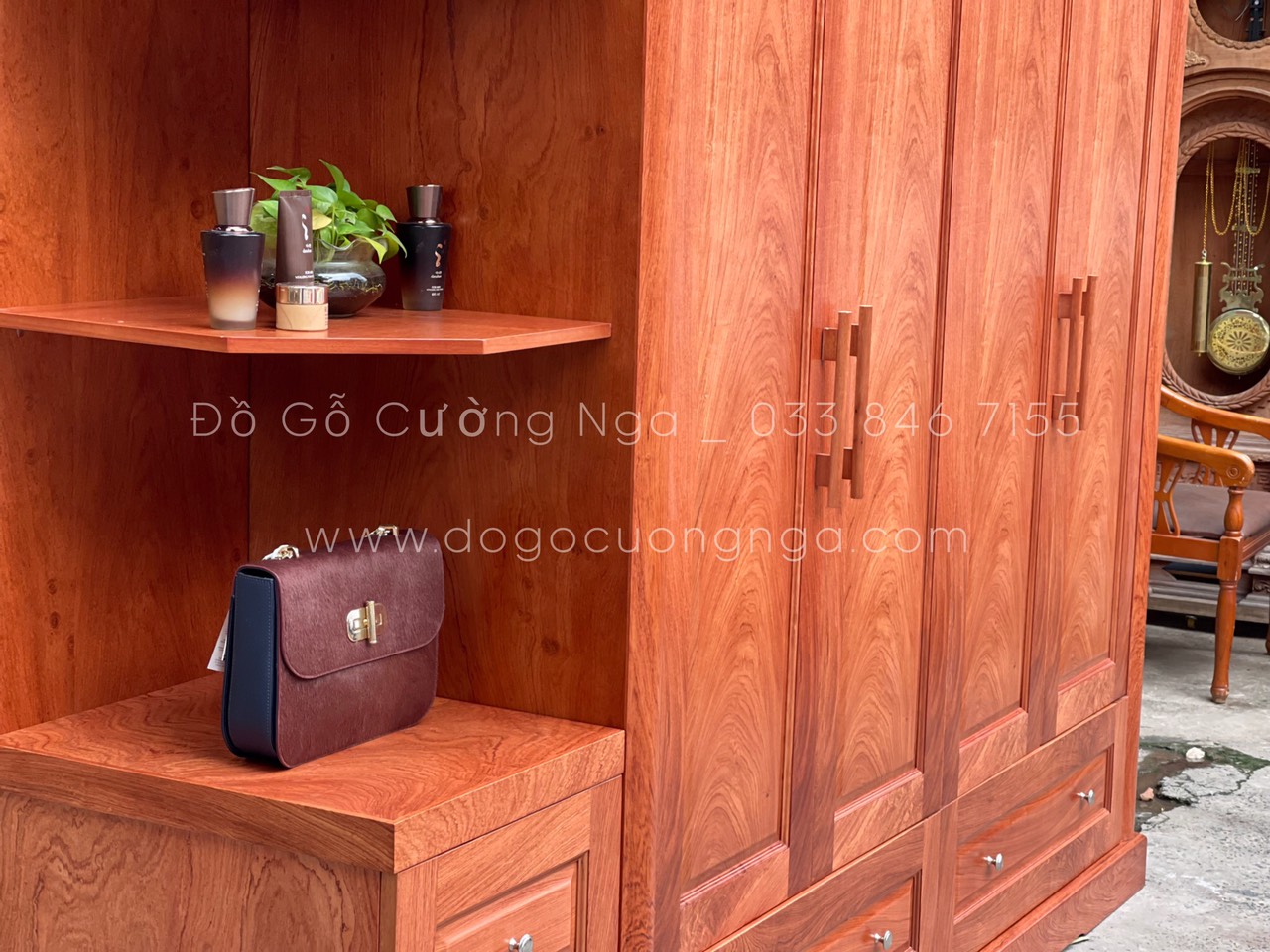 Tủ quần áo gỗ hương đá 4 cánh kèm góc trang trí