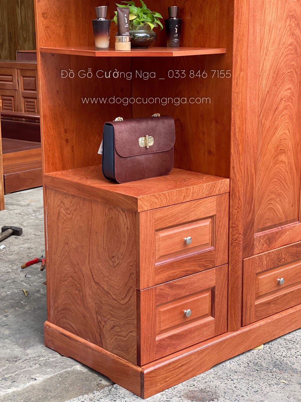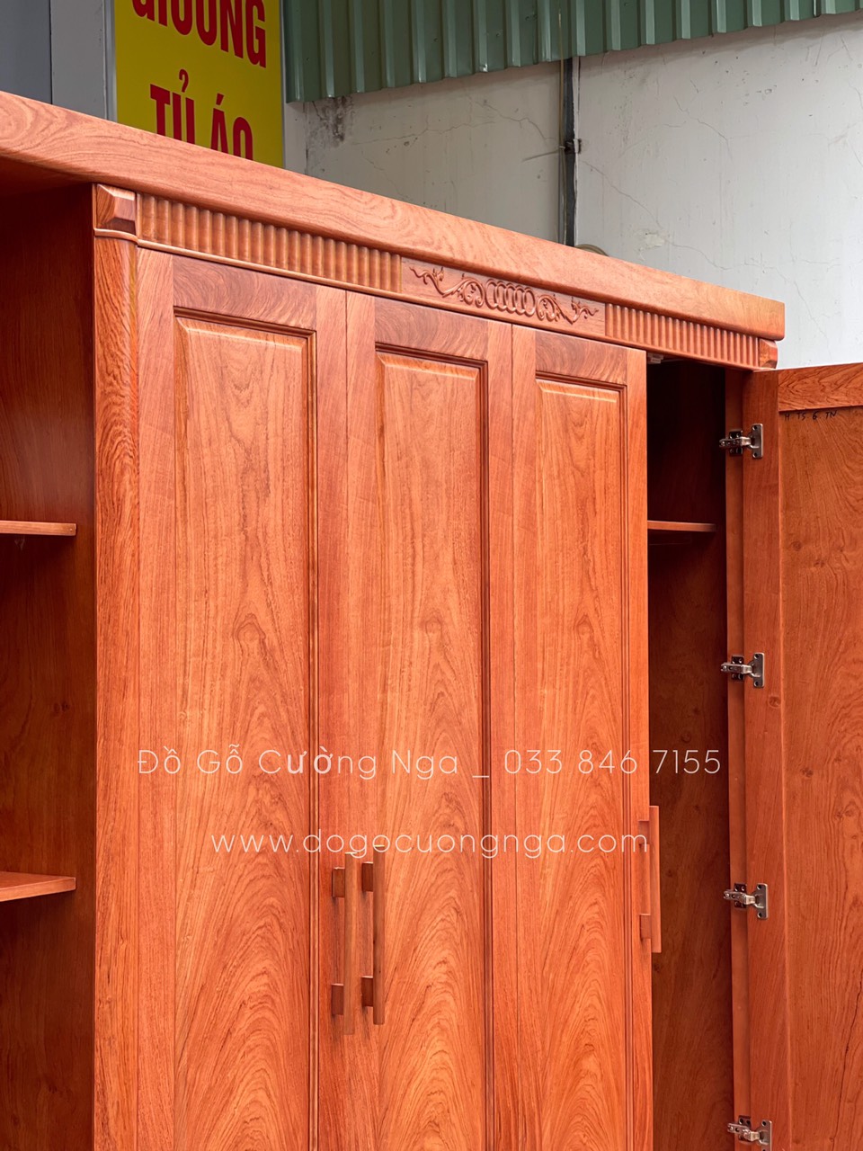 Chi tiết tủ áo gỗ hương đá 4 cánh góc - 2m3