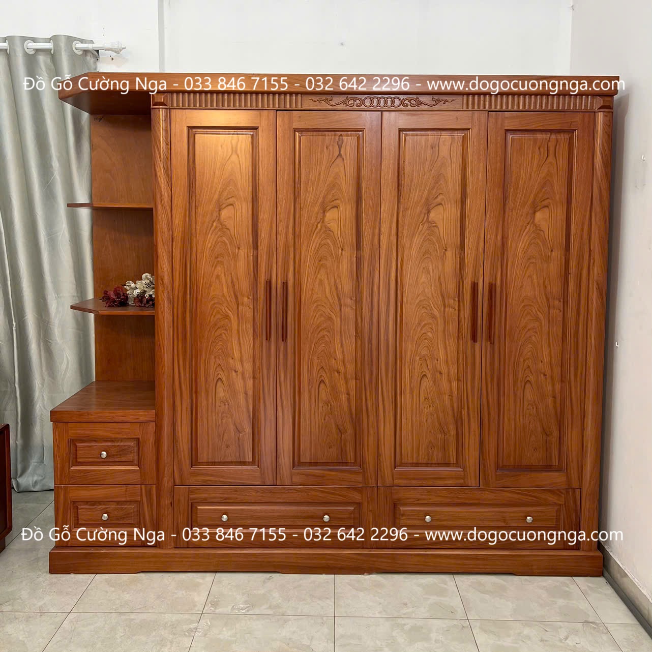 Tủ Quần Áo Gỗ Hương Đá 4 Cánh Kèm Kệ Vế Trái