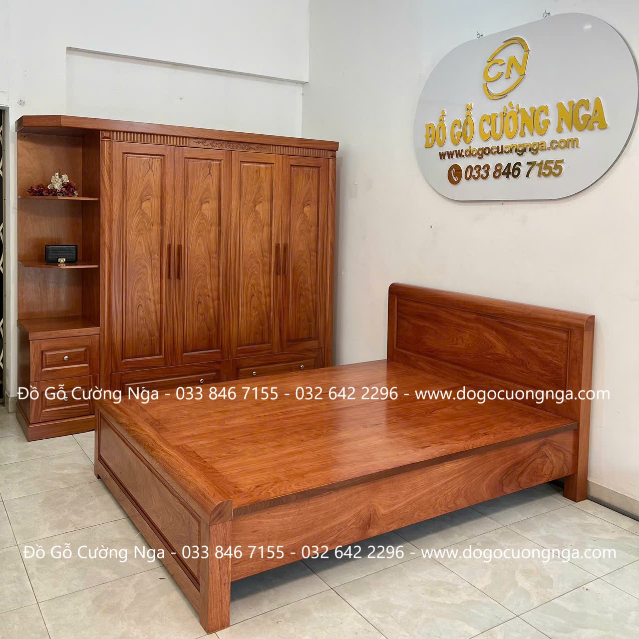 Giới Thiệu Tủ Quần Áo Gỗ Hương Đá 4 Cánh Kèm Kệ Vế Trái