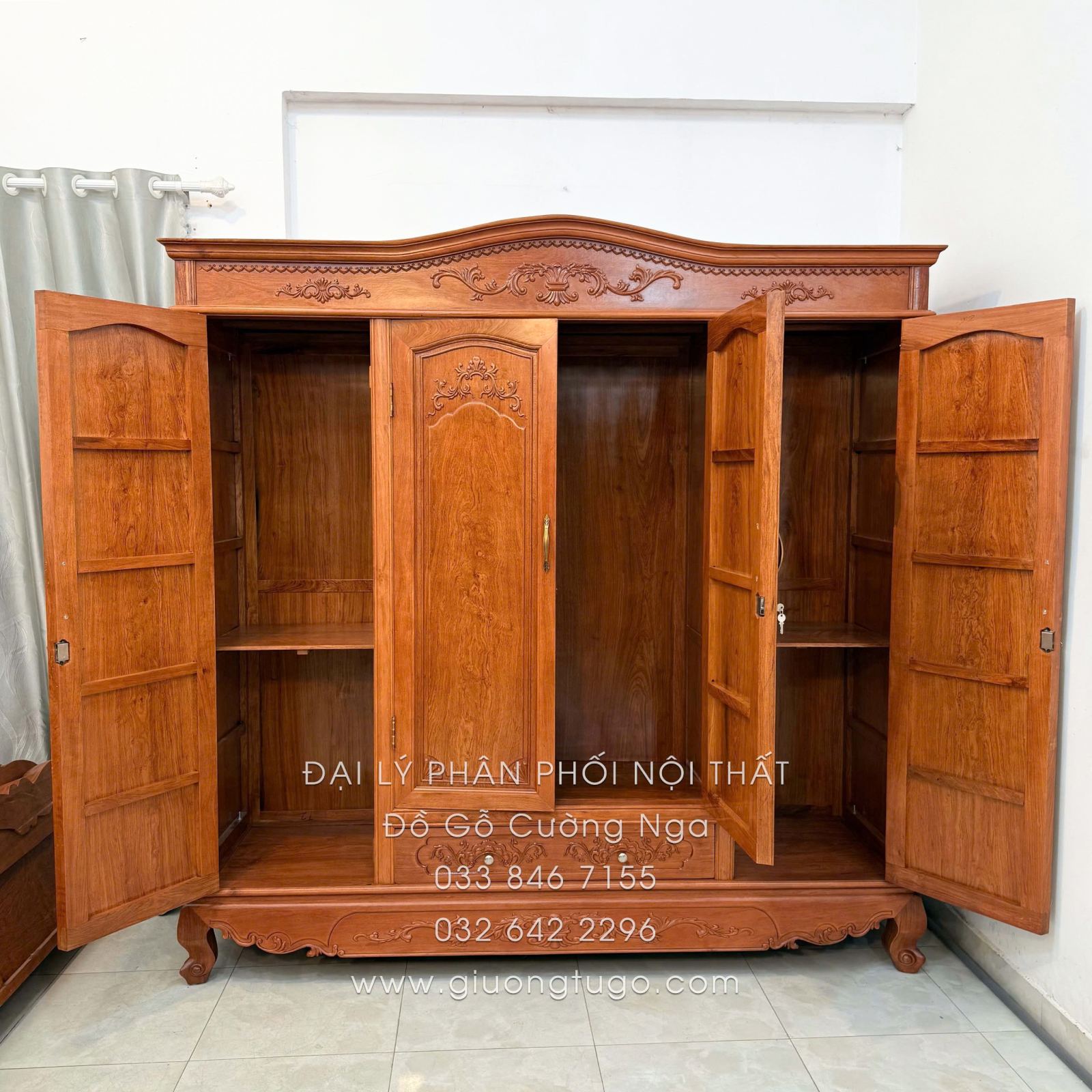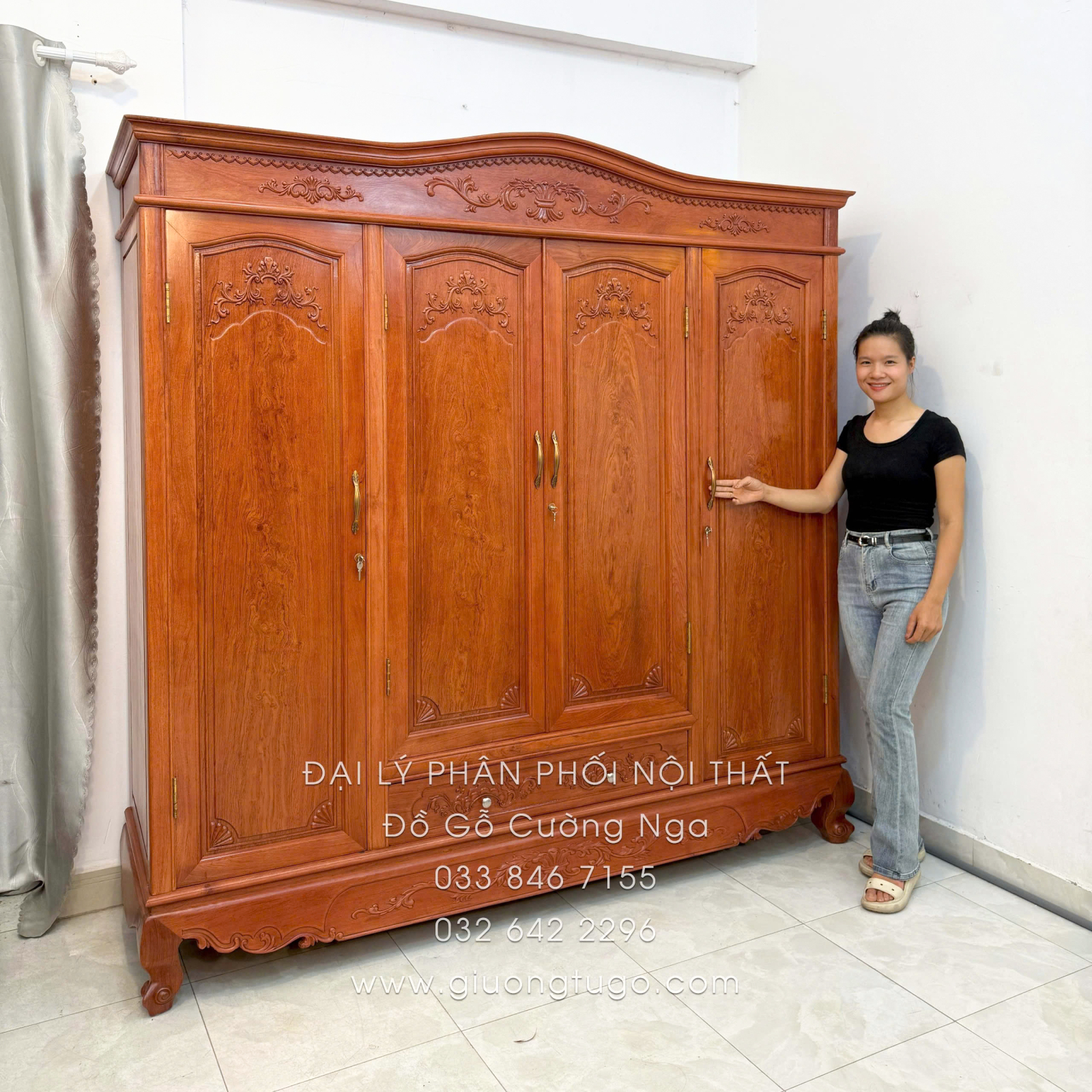 Thông tin chi tiết Tủ Quần Áo Gỗ Hương Đá 4 Cánh Tân Cổ Điển Trang Nhã
