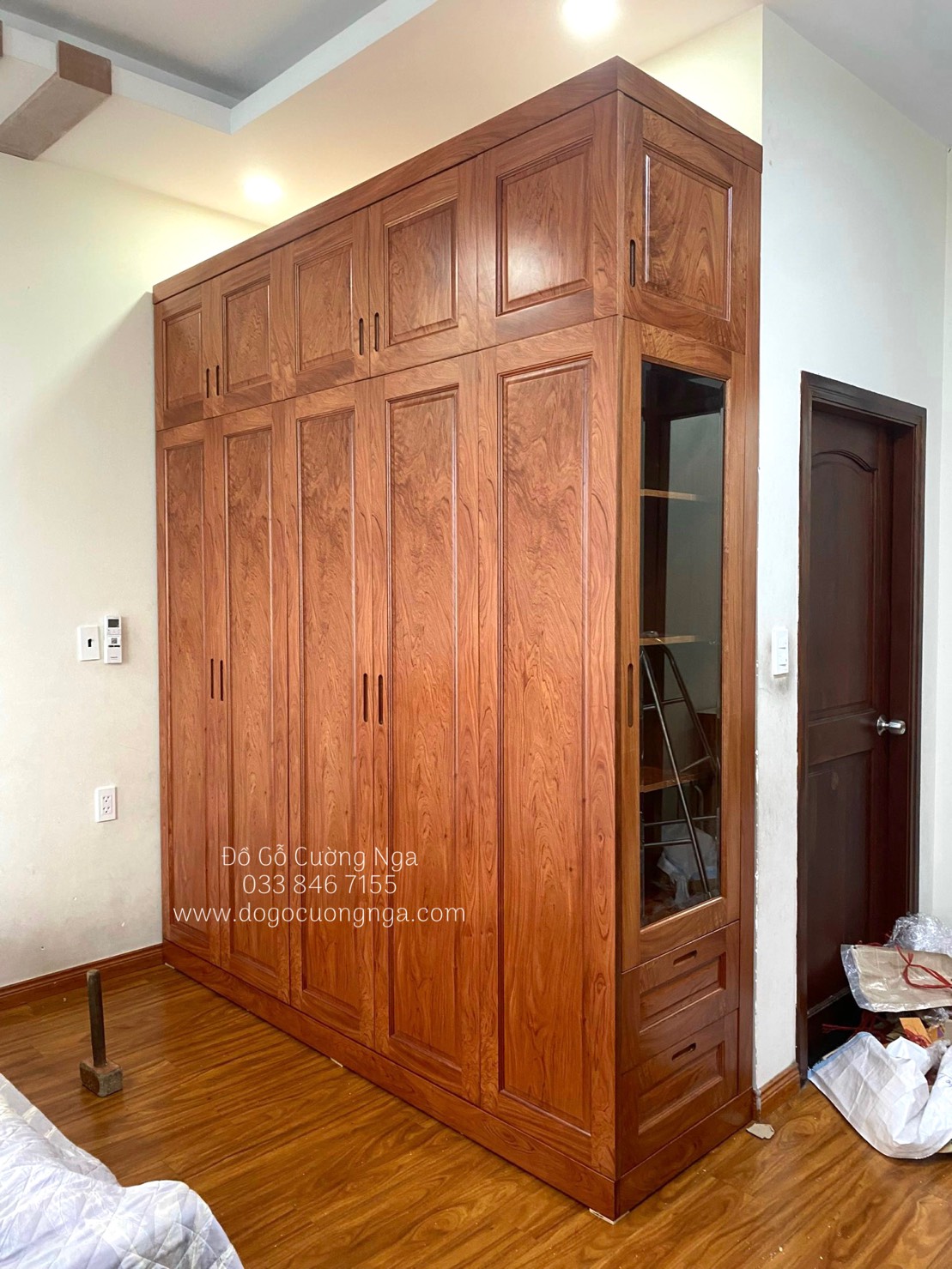 Tủ áo gỗ hương đá 5 cánh cao cấp ( đặt theo yêu cầu )