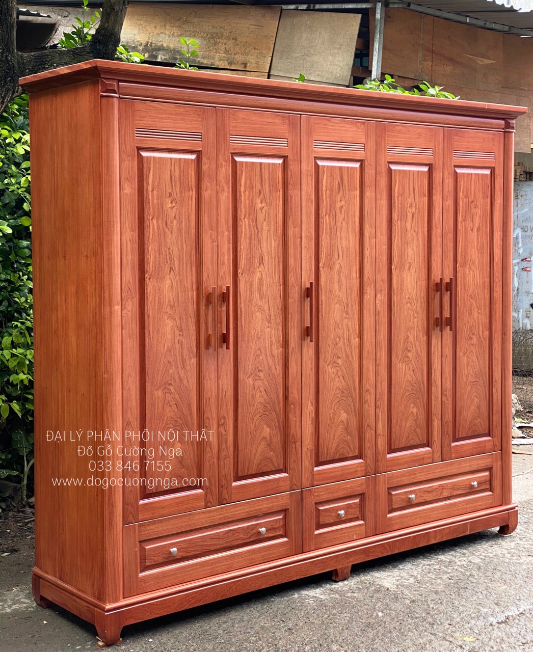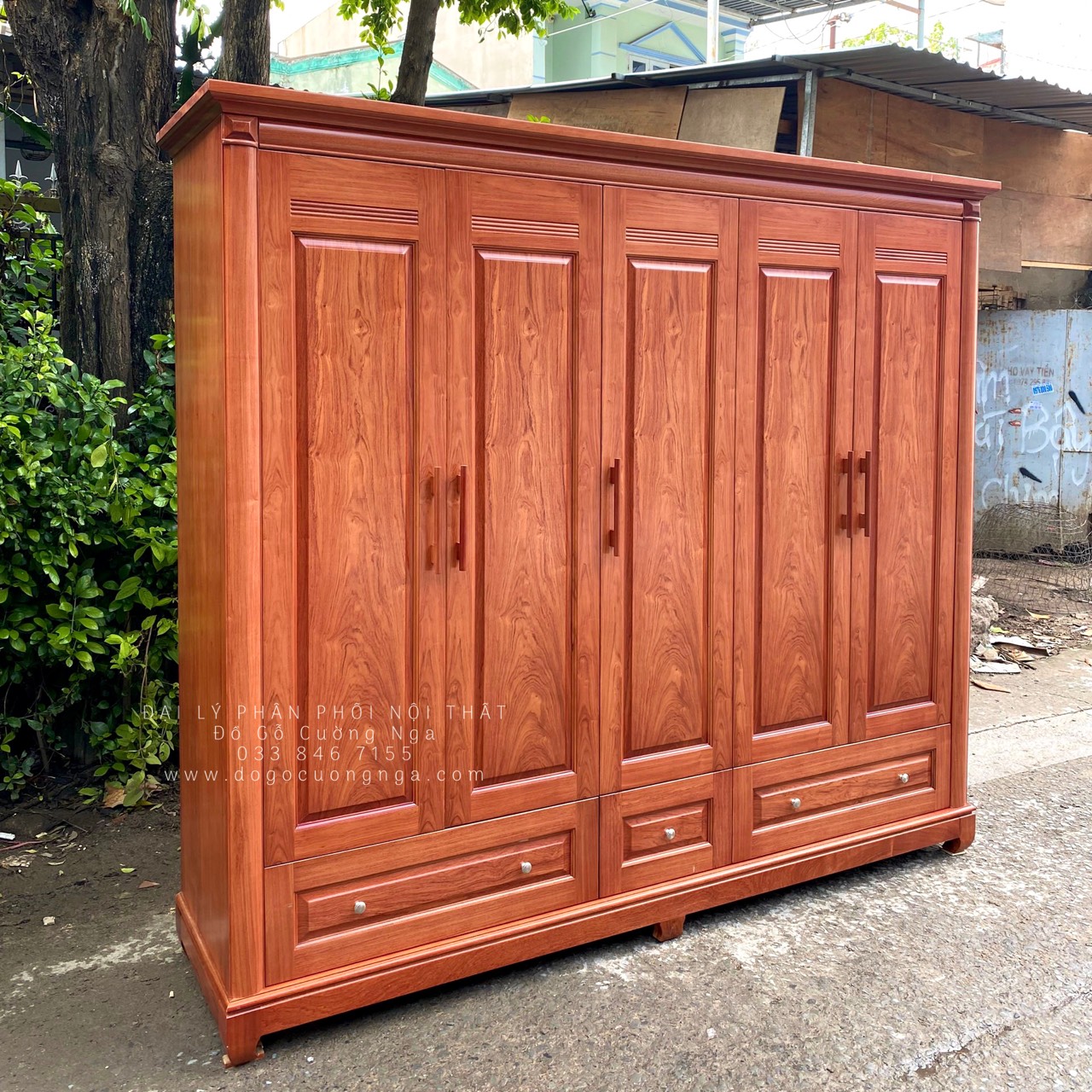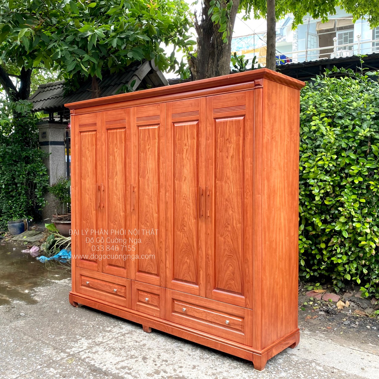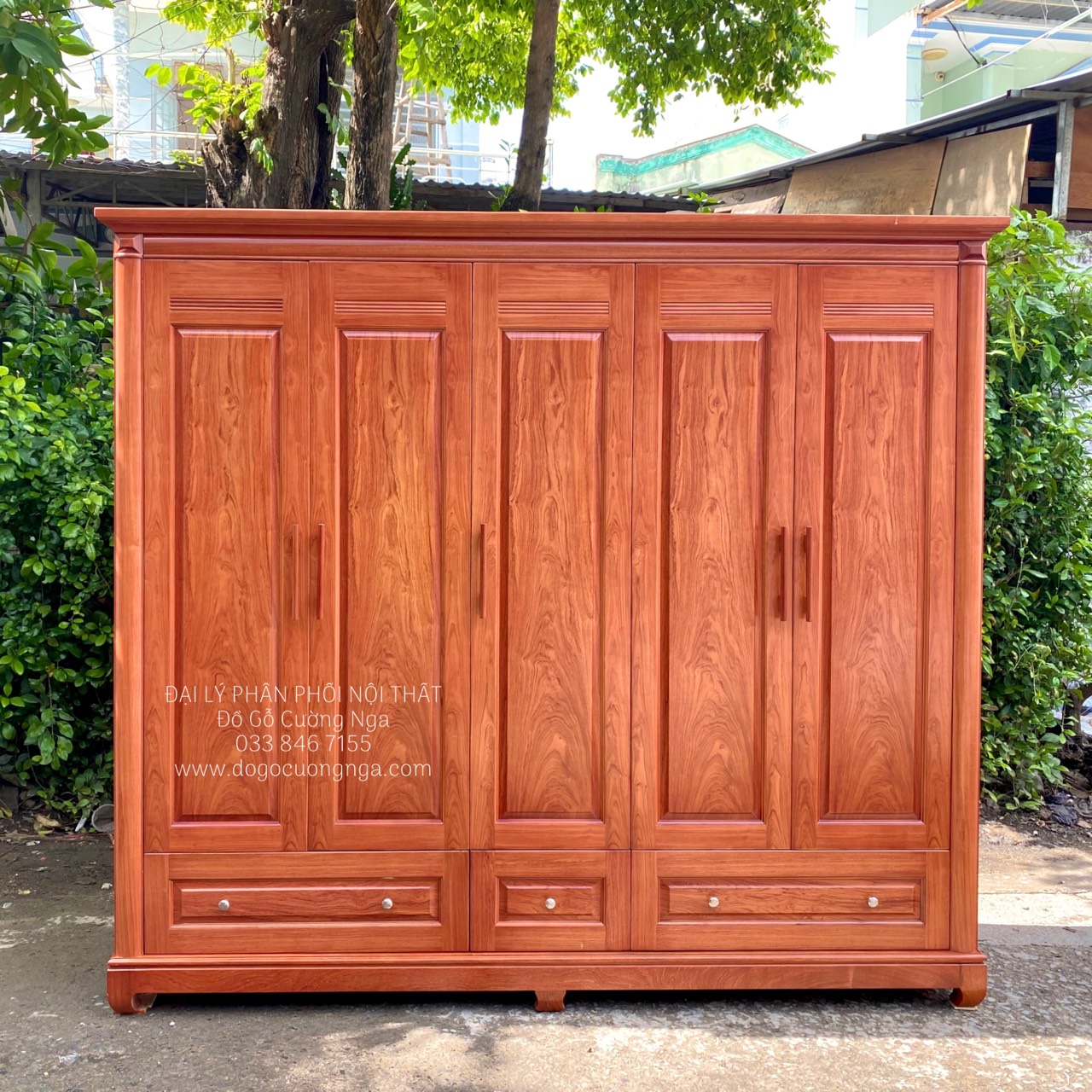 Tủ Quần Áo Gỗ Hương Đá 5 Cánh Cao Cấp